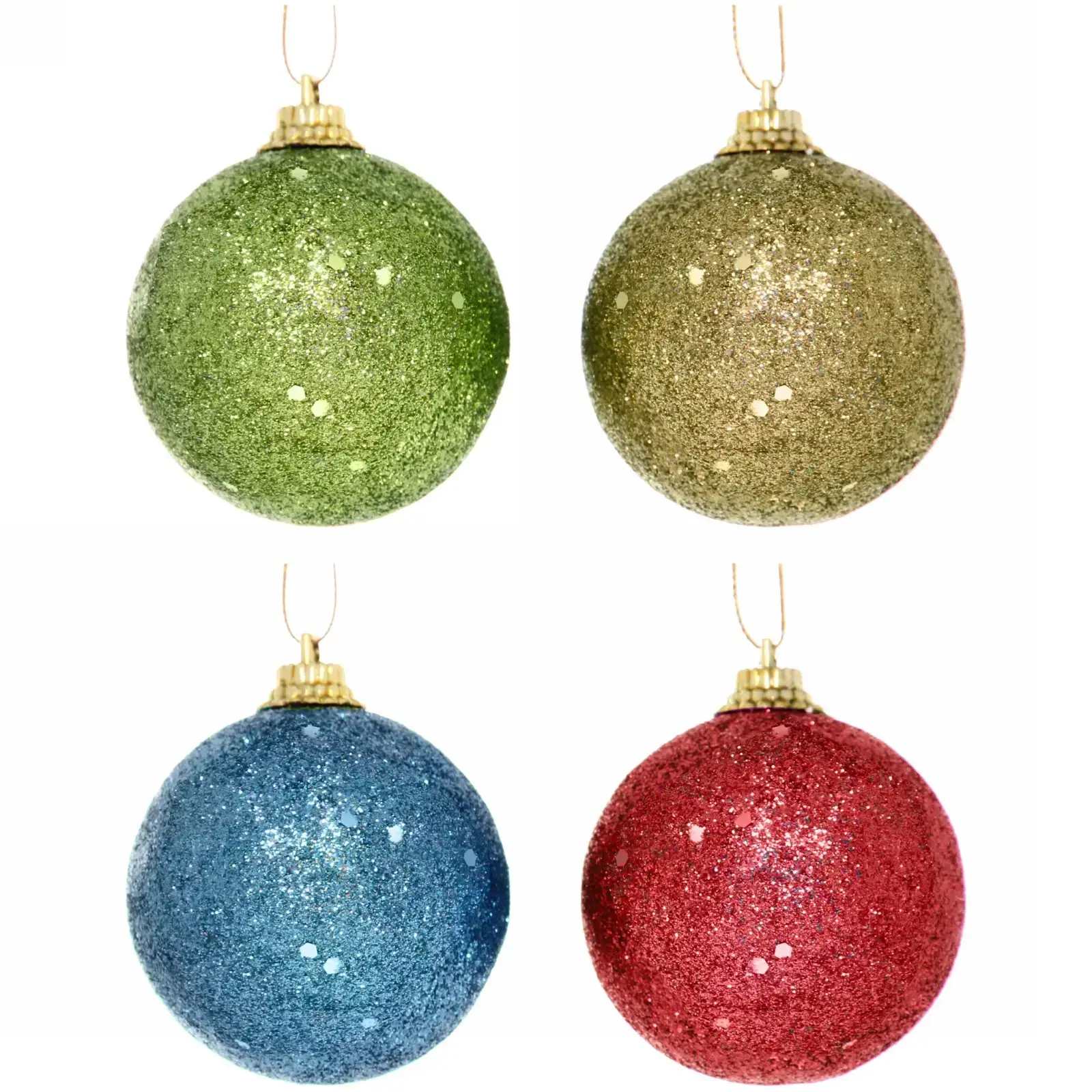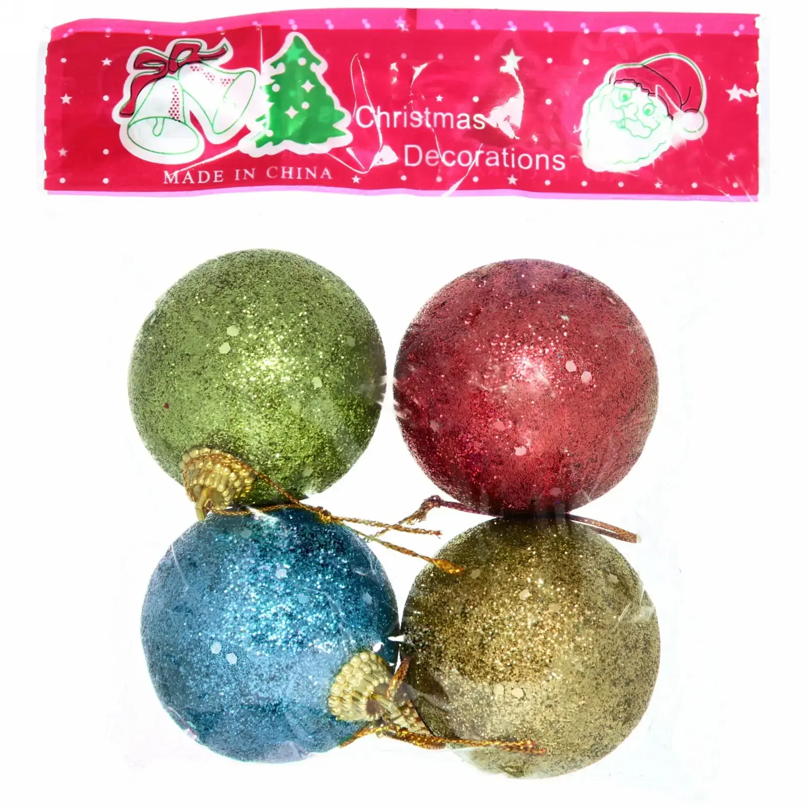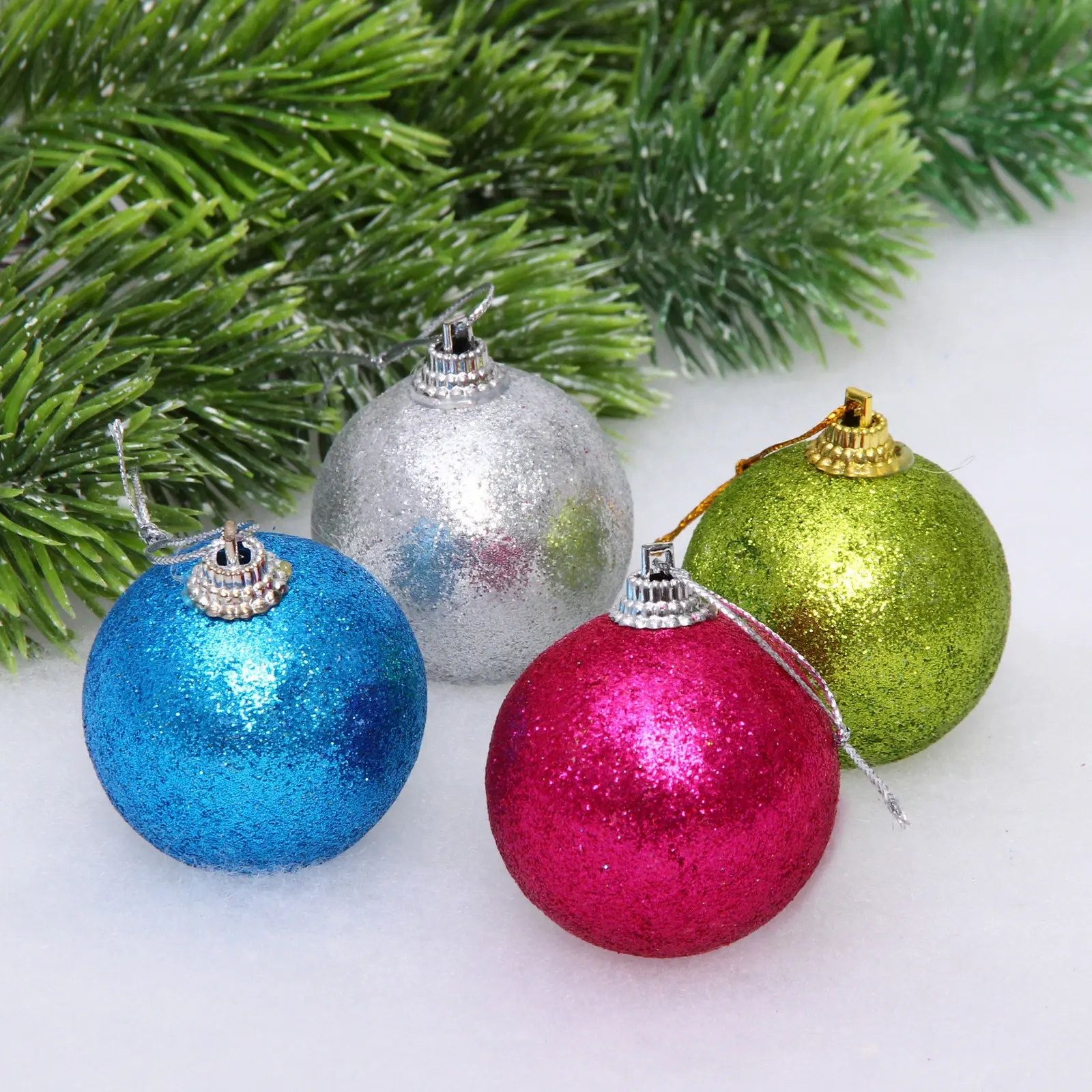 Эти новогодние шары с блестящим напылением — идеальный способ добавить волшебства в ваш дом. Они не только украсят вашу ёлку, но и создадут праздничное настроение для всей семьи. Каждый шар диаметром 5 см выполнен в ярких цветах: зелёном, золотистом, синем и красном, что позволяет легко сочетать их с другими украшениями.
