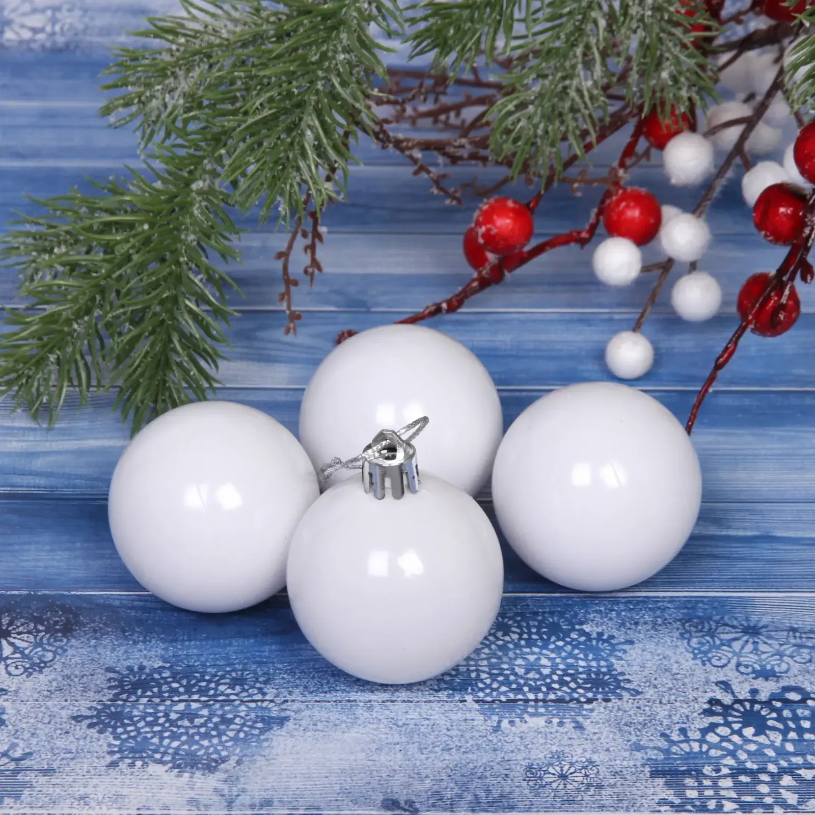 Создайте волшебную атмосферу праздника с комплектом из 4 глянцевых шаров! Идеально ровная поверхность и благородный белый цвет подчеркнут стиль любого интерьера, превратив новогоднюю елку в произведение искусства.