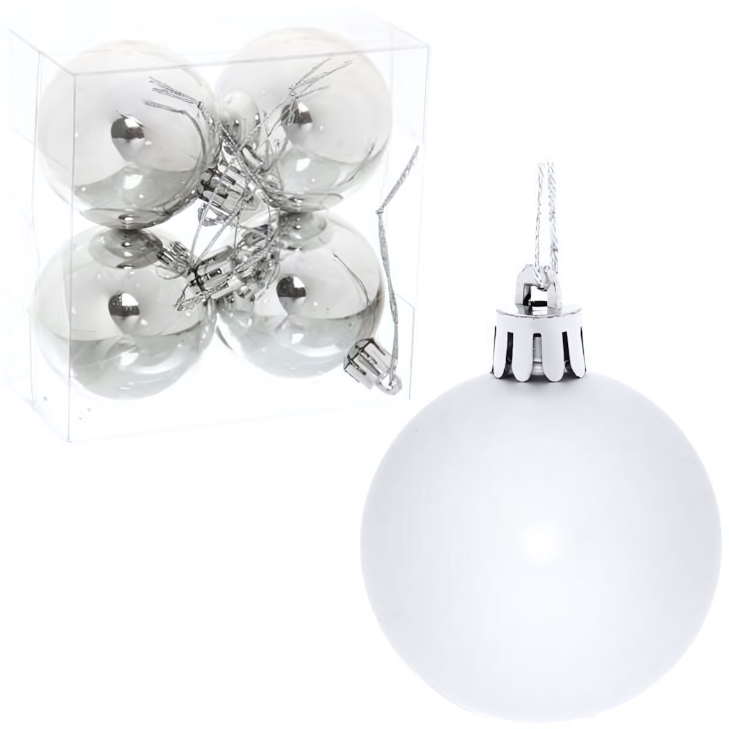 Шары имеют стандартный размер 5 см и выполнены в серебристом цвете, что позволяет им гармонично сочетаться с другими новогодними украшениями. Упаковка прозрачная, что позволяет видеть содержимое и удобно хранить шары после праздников. Не упустите возможность сделать ваш Новый год незабываемым с этими стильными и практичными новогодними шарами!