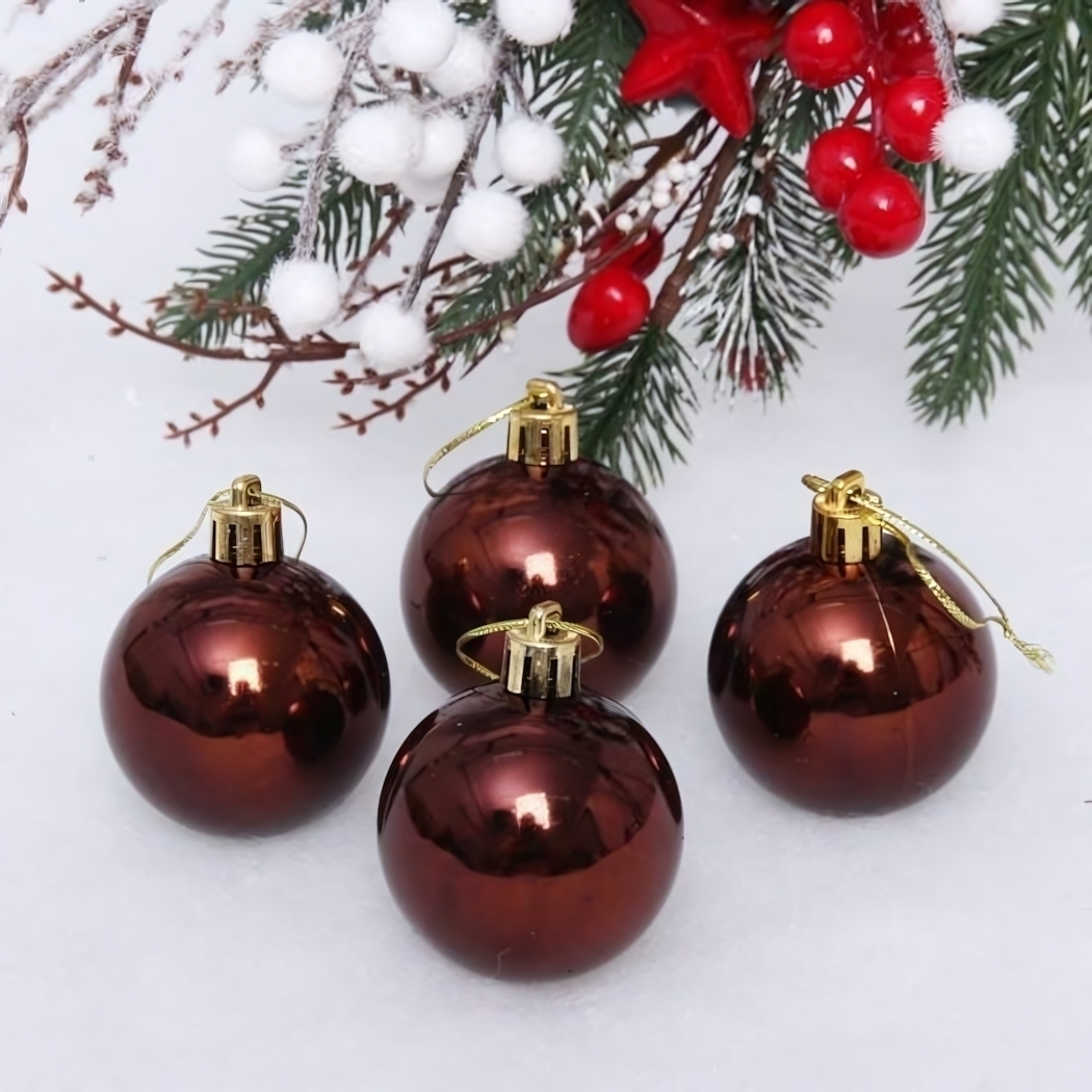 Погрузитесь в атмосферу волшебного Нового года с набором из четырёх глянцевых новогодних шаров. Их шоколадный оттенок и золотой колпачок создают праздничное сияние, которое сразу привлекает внимание гостей и превращает обычную ёлку в центр восхищения.