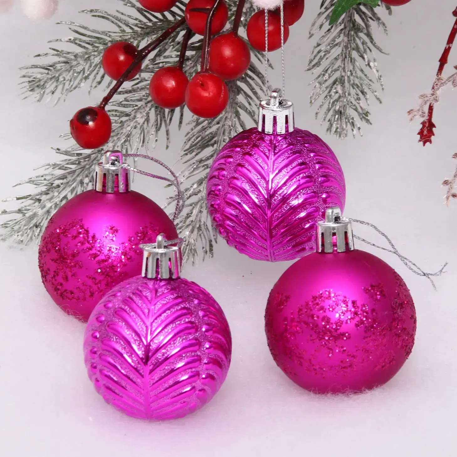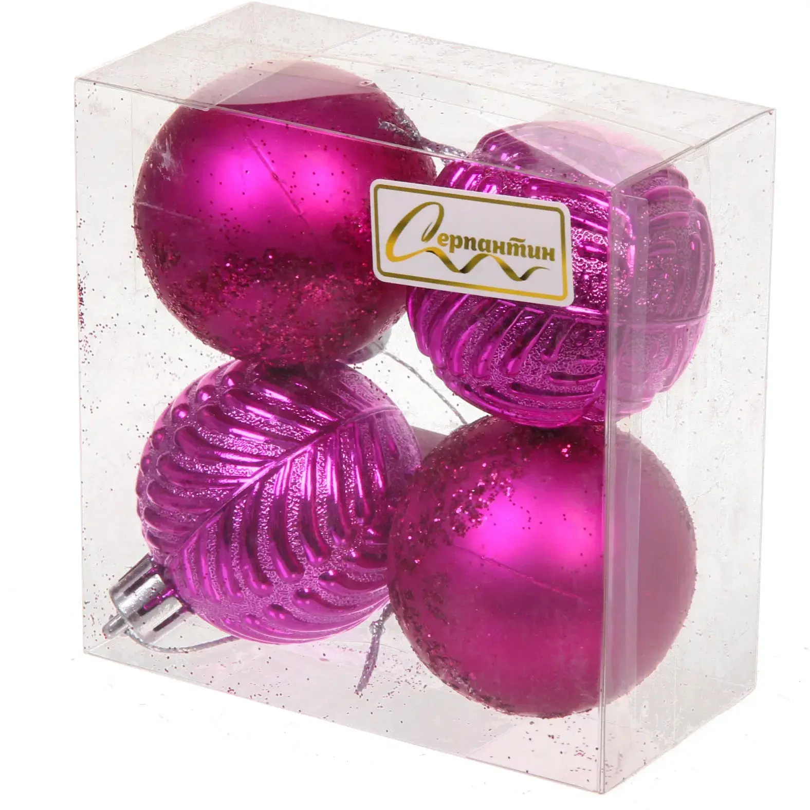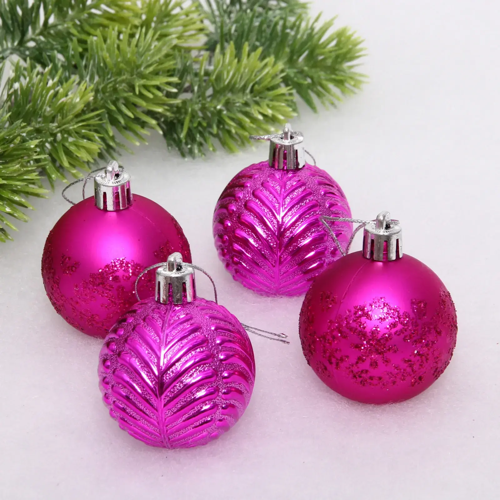 Новогодние шары 5 см (набор 4 шт) «Лесная тайна», фуксия, пластик, для елки и декорирования
