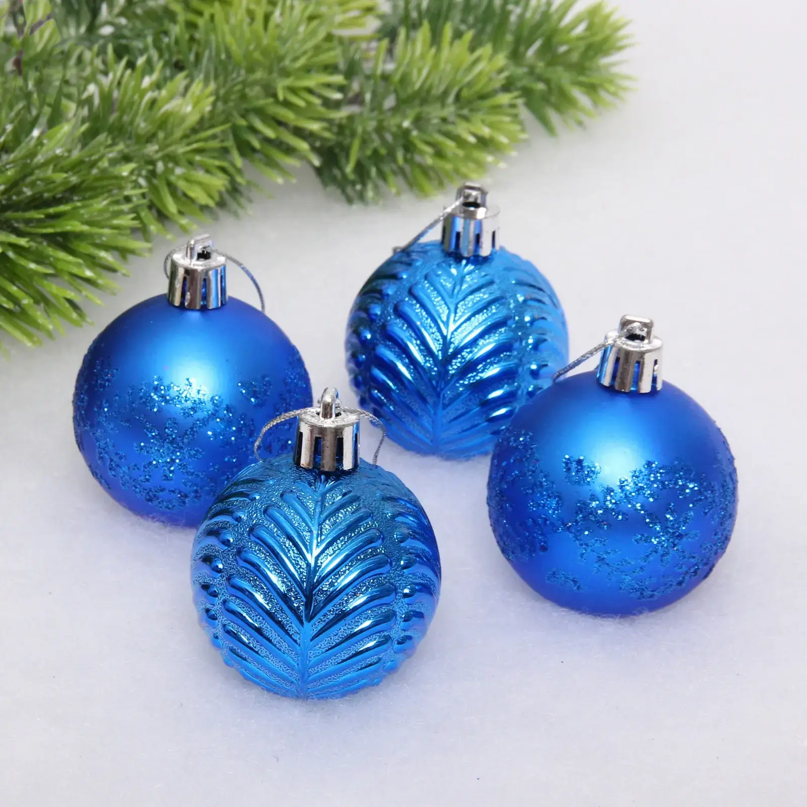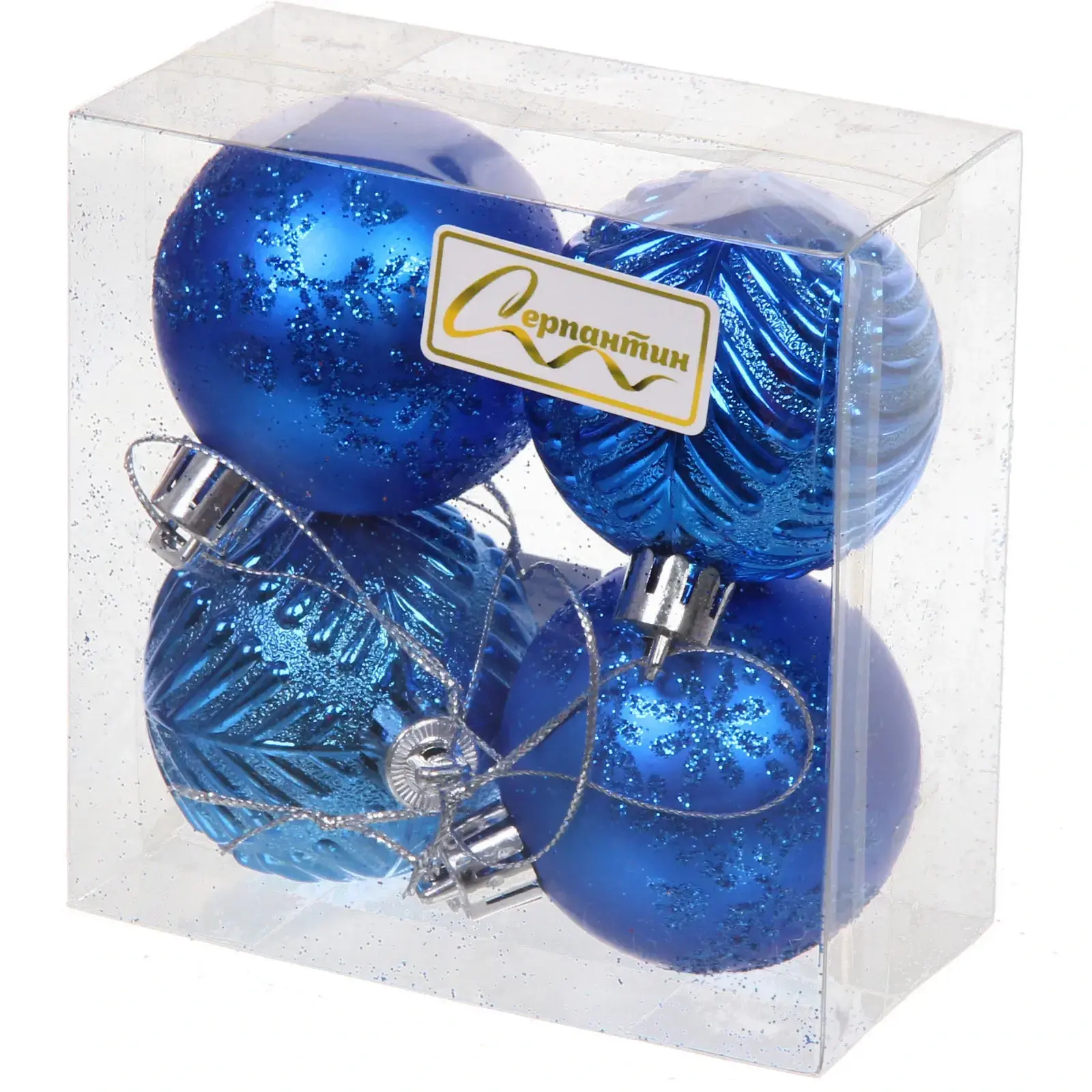 Новогодние шары 5 см (набор 4 шт) «Лесная тайна», синий, пластик, для елки и декорирования
