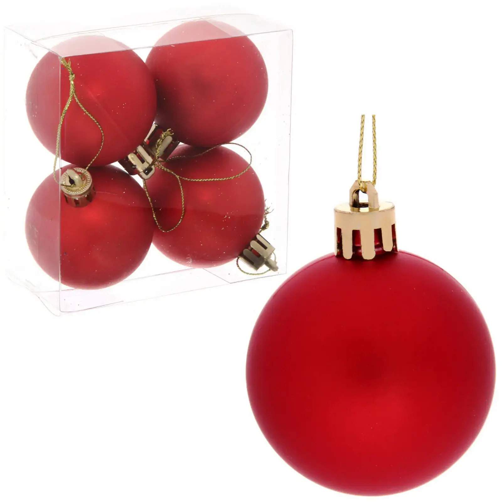 Новогодние шары 5 см (набор 4 шт) «Матовый», красный, пластик, для елки и декорирования