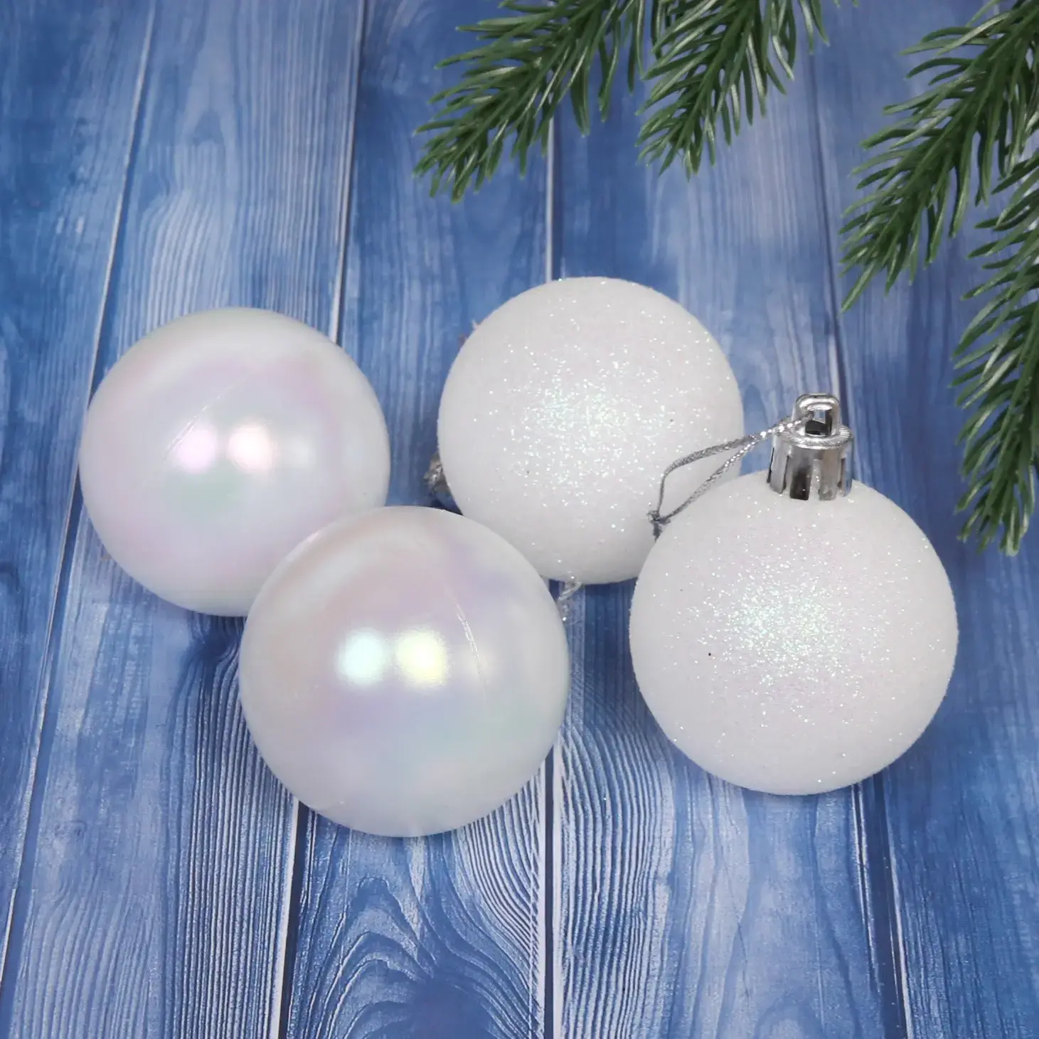 Новогодние шары 5 см (набор 4 шт) «Микс фактур», Белый/перламутр, пластик, для елки и декорирования