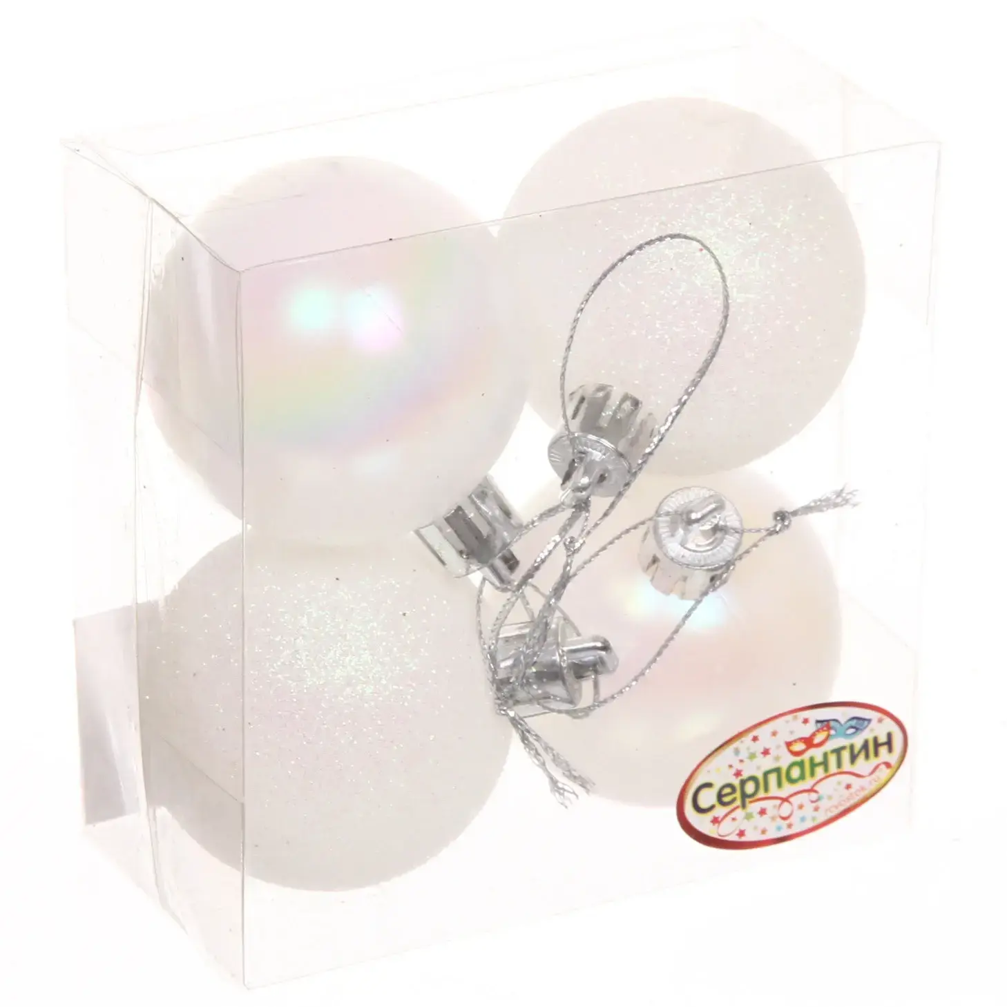 Каждый шар диаметром 5 см поставляется в практичной прозрачной упаковке, которая защищает игрушки при хранении. Комплект из четырех шаров дает возможность создавать интересные комбинации в декоре.