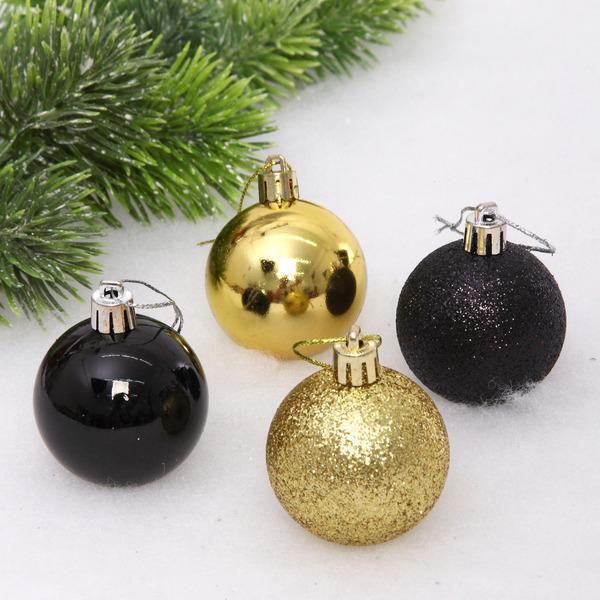 Новогодние шары 'Микс фактур', 5 см, набор 4 шт, черный/золото