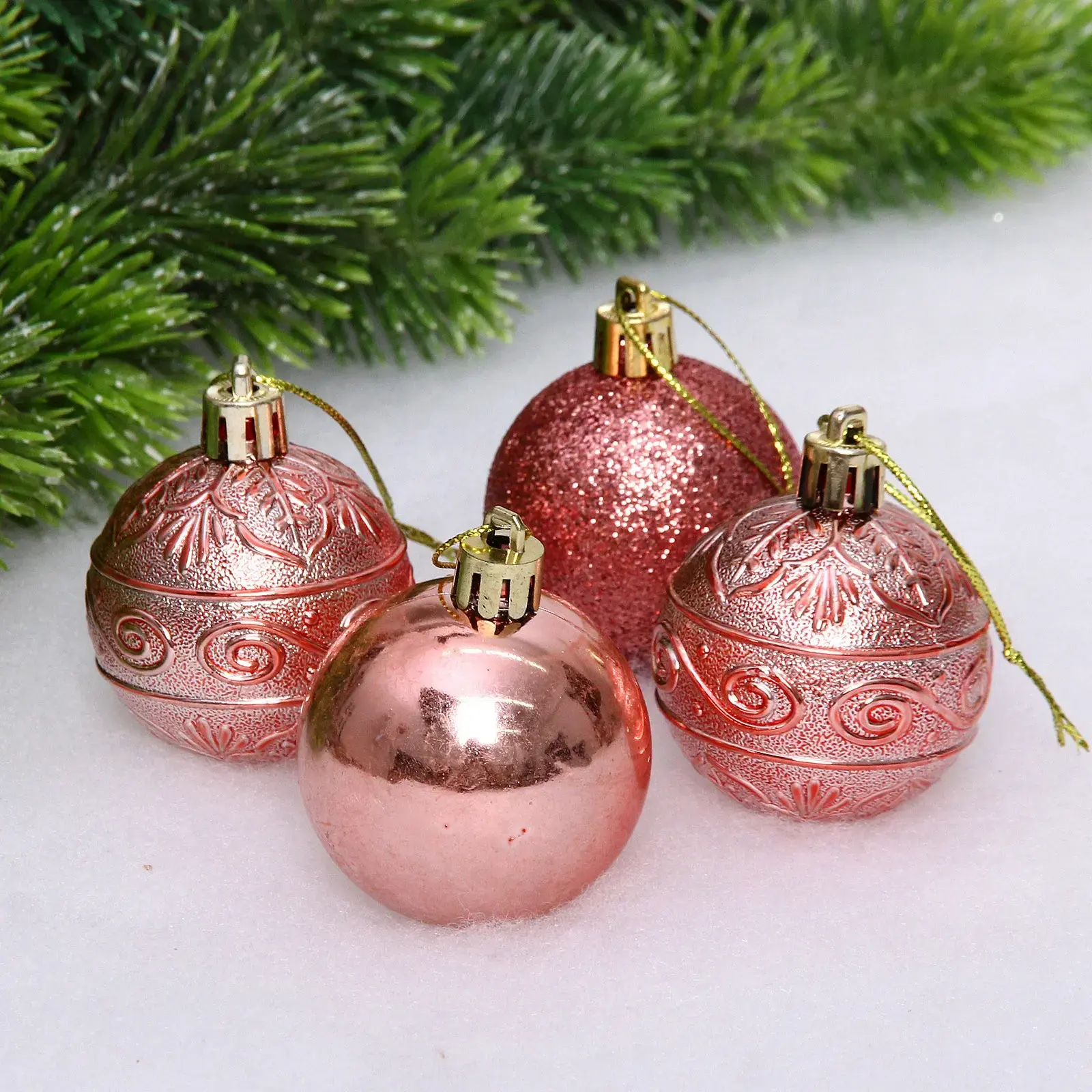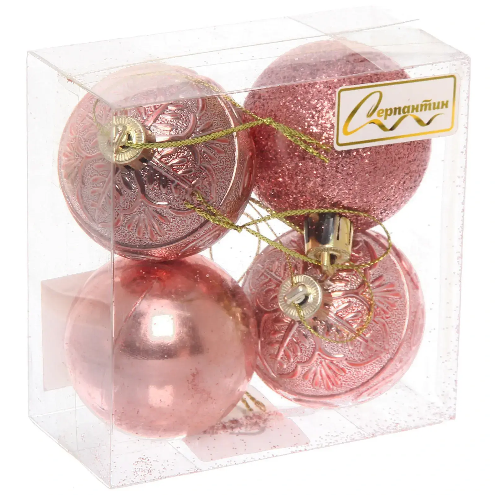 Новогодние шары 5 см (набор 4 шт) «Микс фактур», розовое золото, пластик, для елки и декорирования