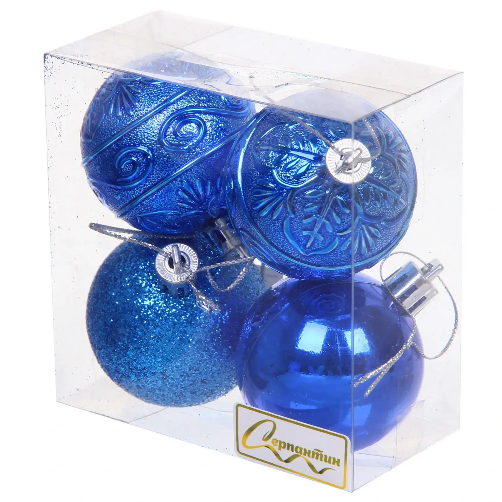 Новогодние шары — это не просто украшения, это символы праздника, которые наполняют дом атмосферой уюта и радости. Набор из четырех шаров диаметром 5 см в различных оттенках синего цвета станет идеальным дополнением к вашей новогодней елке. Каждый шар имеет уникальную текстуру: один покрыт блестками, другой — глянцевый, третий — матовый, а четвертый — с рельефным дизайном в виде чешуи. Эти шары не только красивы, но и практичны, так как выполнены из прочного пластика, что делает их долговечными и безопасными для детей.