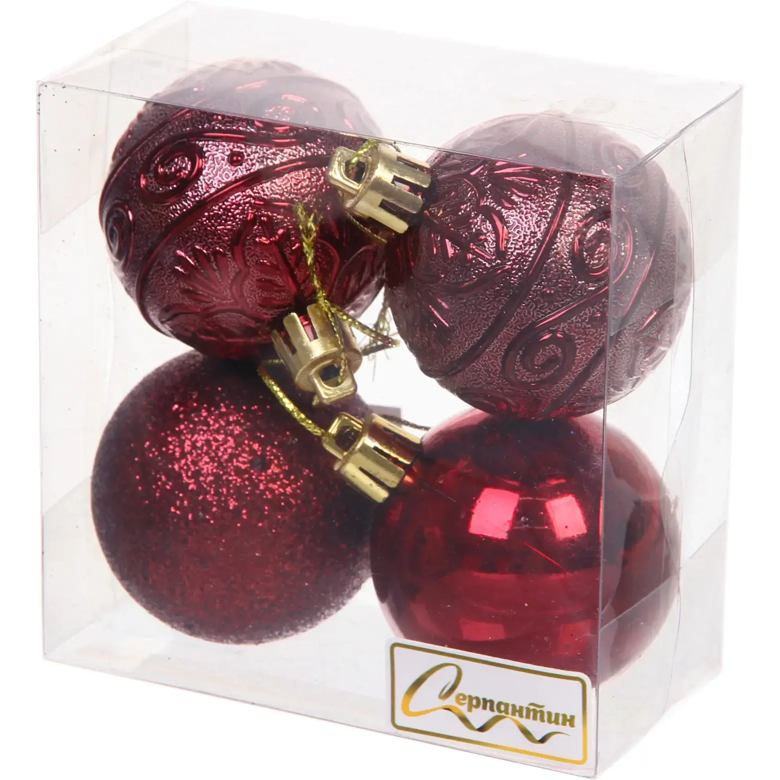 Новогодние шары — это не просто украшения, это символы праздника, которые наполняют ваш дом атмосферой уюта и радости. Набор из четырех шаров в темном рубине с различными фактурами и отделкой станет идеальным дополнением к вашей новогодней елке. Эти шары не только красивы, но и практичны, ведь они выполнены из прочного пластика, что гарантирует их долговечность и безопасность в использовании.
