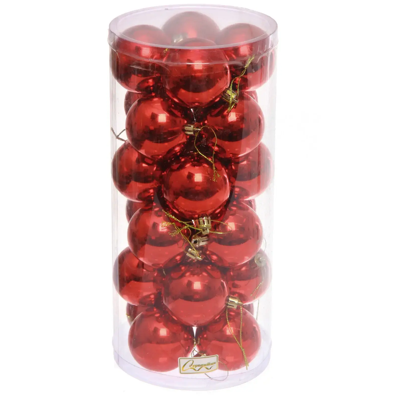 Шары упакованы в прозрачный цилиндрический контейнер для удобного хранения. Каждый элемент имеет классическую круглую форму без рисунков — идеальная база для самостоятельного декорирования или сочетания с другими украшениями.
