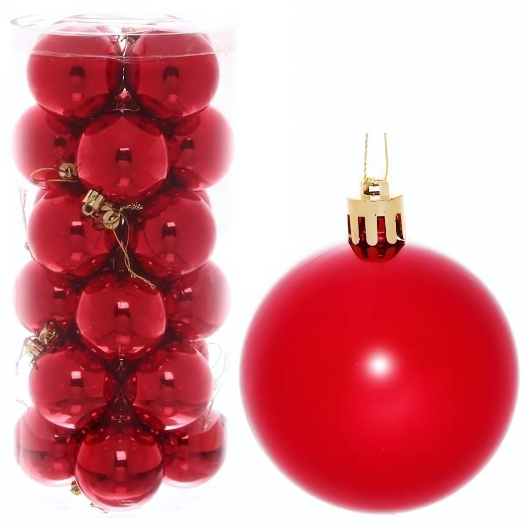 Диаметр каждого шара – 6 см, упаковка включает 24 штуки, цвет – ярко‑красный «Глянец». Шары произведены в соответствии с европейскими стандартами качества, обеспечивая долговечность и безопасность для детей.