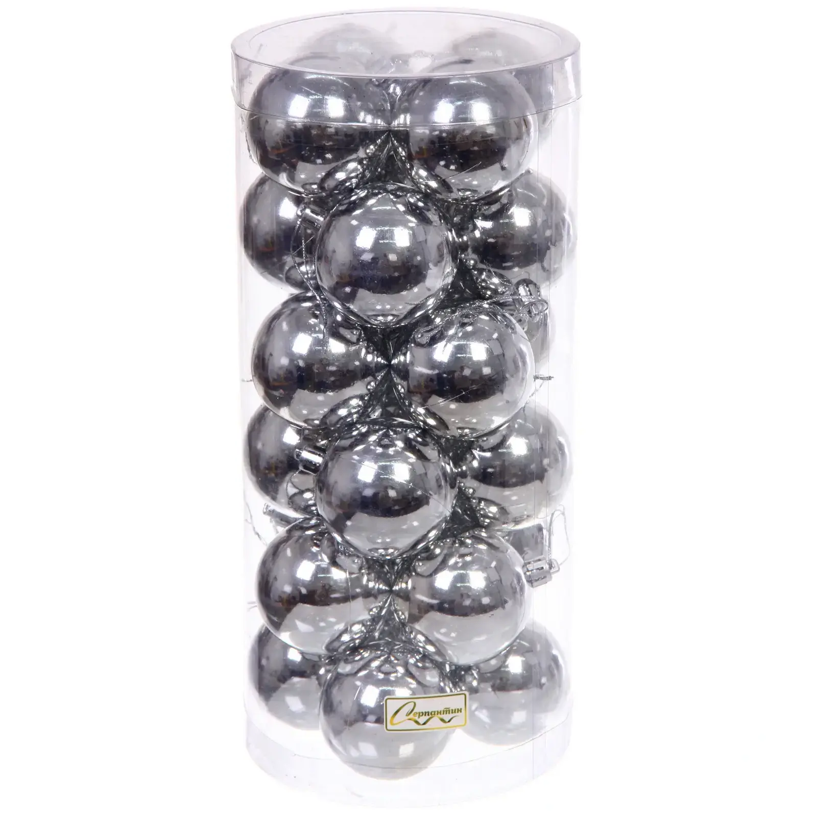 Новогодние шары — это не просто украшения, это символы праздника, которые наполняют дом атмосферой уюта и радости. Набор из 24 серебристых шаров диаметром 6 см с глянцевой поверхностью станет идеальным дополнением к вашему новогоднему декору. Эти шары легко впишутся в любой интерьер, добавляя ему блеска и элегантности.