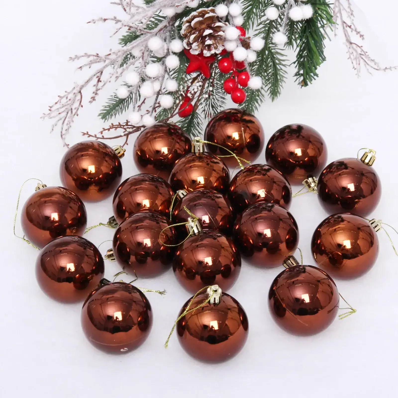 Новогодние шары 6 см (набор 24 шт) «Глянец», шоколад, пластик, для елки и декорирования