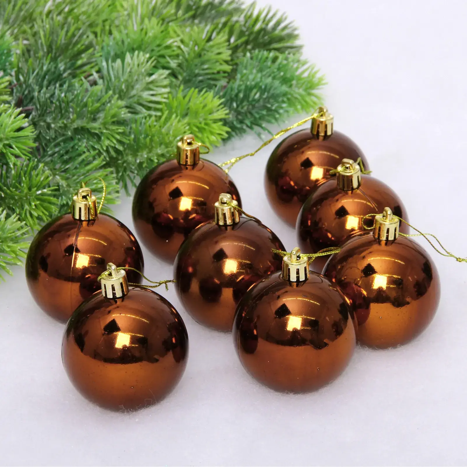 Элегантные новогодние шары в благородном коричневом цвете наполнят ваш дом теплом и уютом зимних праздников. Благодаря глянцевой поверхности, они переливаются при свете гирлянд, создавая волшебное мерцание.
