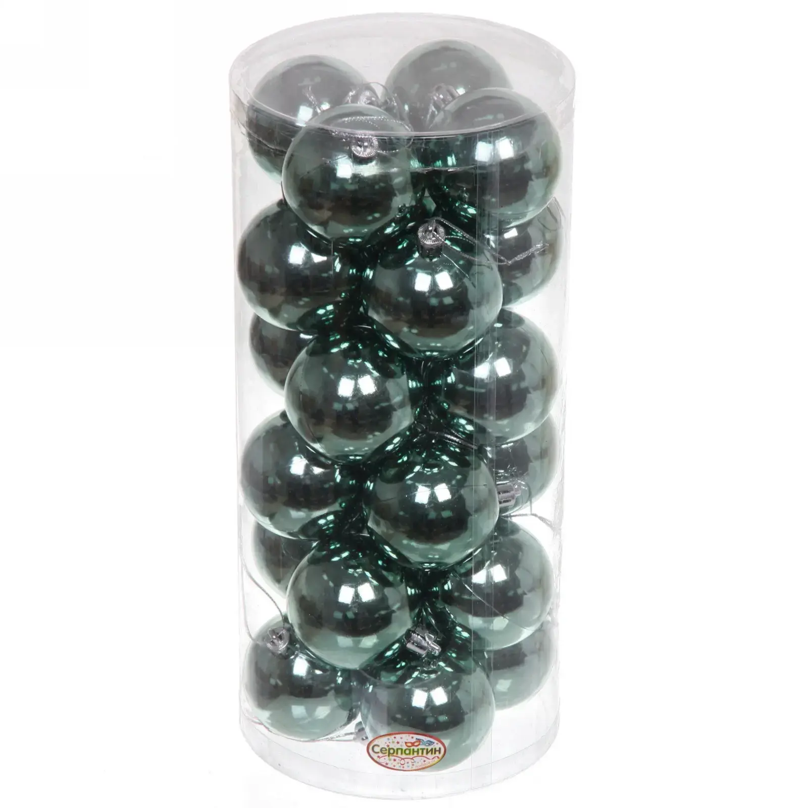Новогодние шары 6 см (набор 24 шт) «Глянец», темный нефрит, пластик, для елки и декорирования