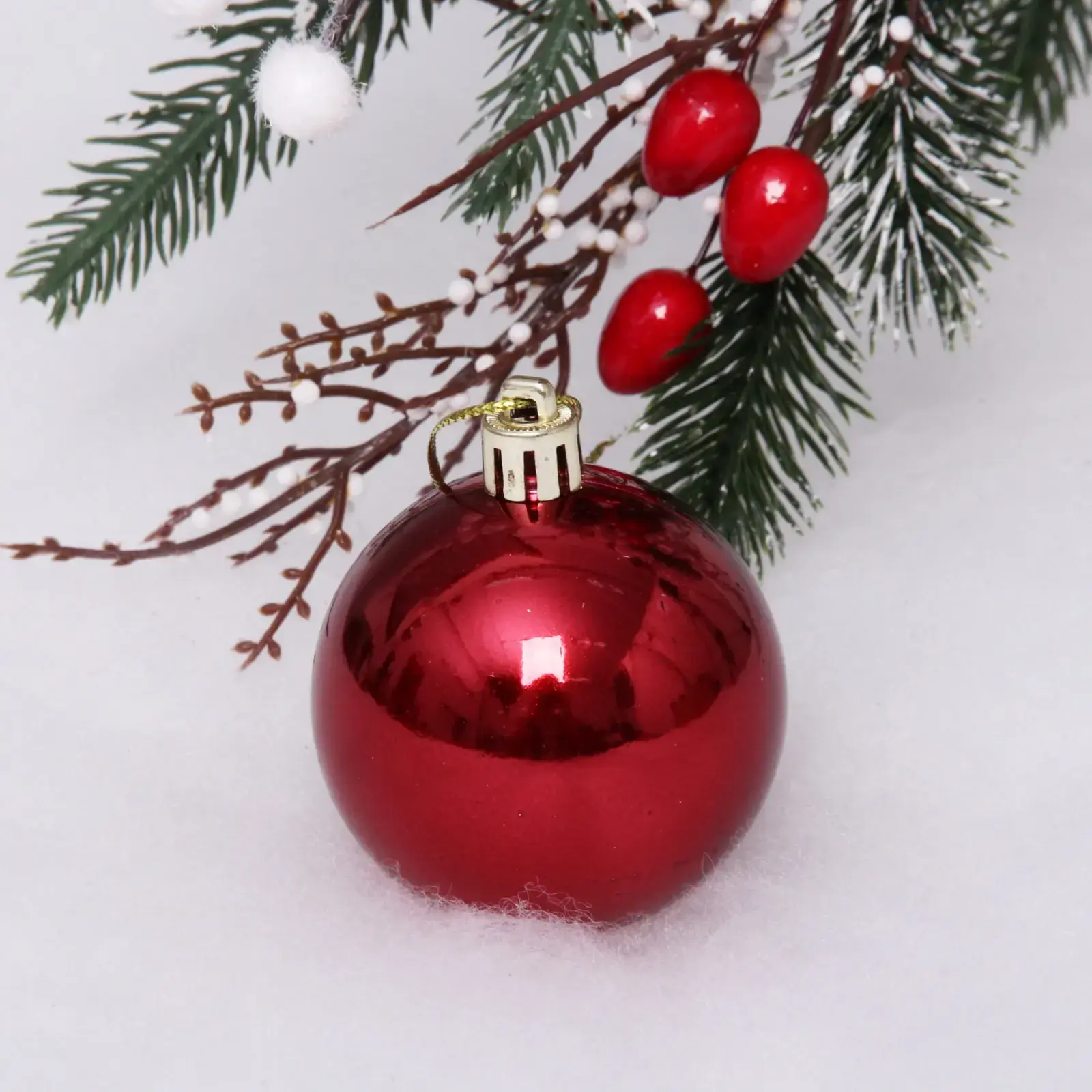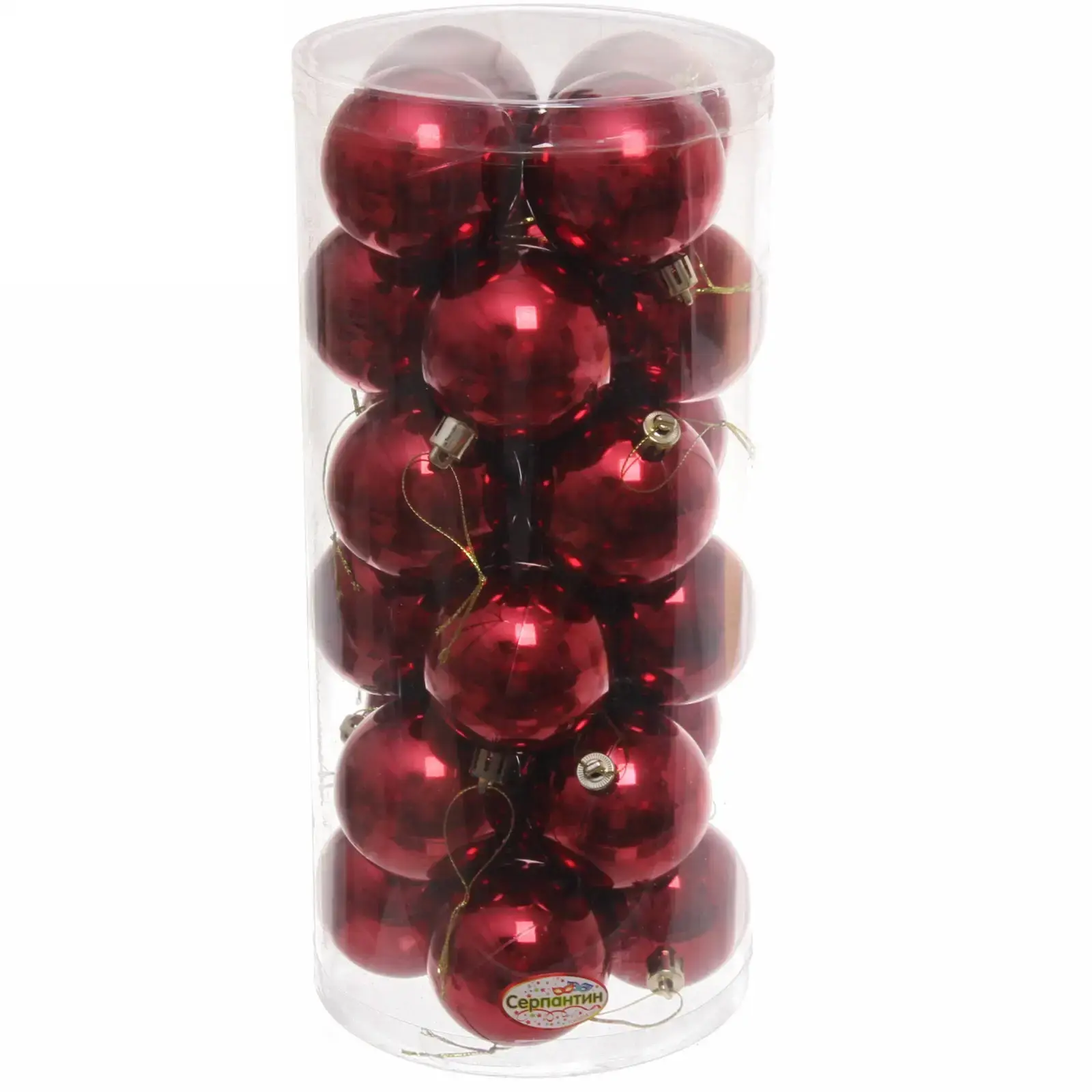 Набор из 24 глянцевых шаров насыщенного рубинового оттенка станет идеальным решением для оформления новогодней елки или интерьера. Пластиковые украшения со сверкающей поверхностью отражают свет гирлянд, создавая праздничную игру бликов.