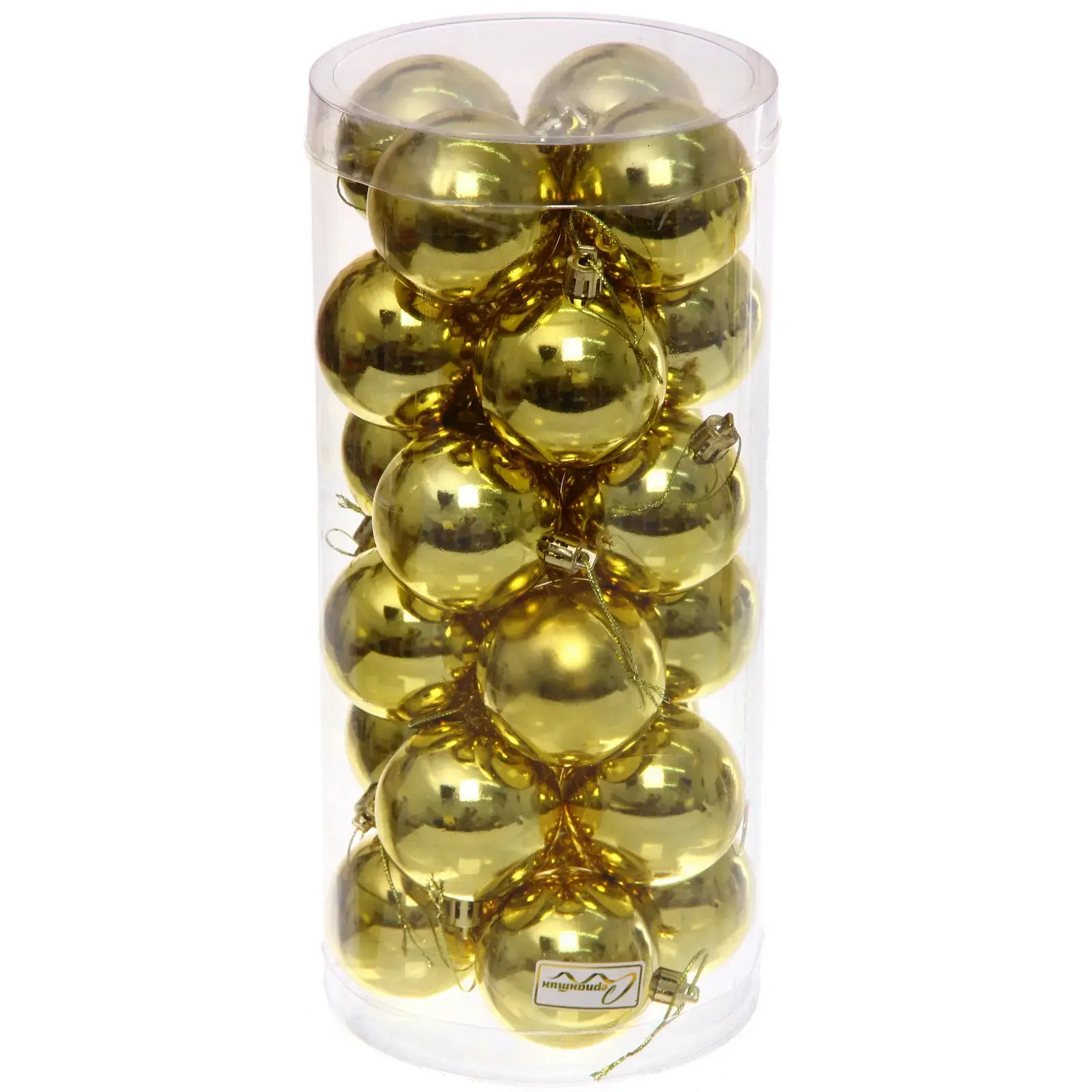 Новогодние шары — это не просто украшения, это символы праздника, которые наполняют ваш дом атмосферой уюта и радости. Набор из 24 золотых шаров диаметром 6 см с глянцевой поверхностью станет идеальным дополнением к вашему новогоднему декору. Эти шары легко впишутся в любой интерьер, добавляя ему яркости и блеска.