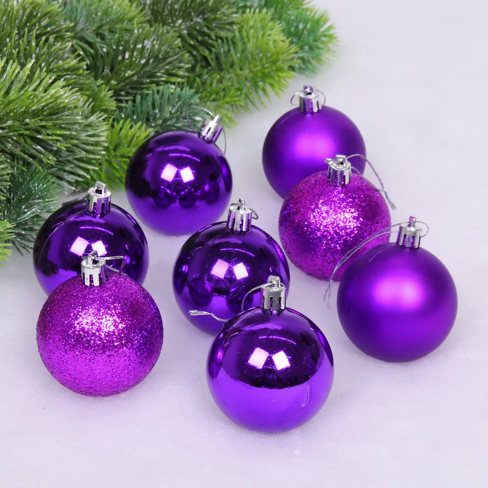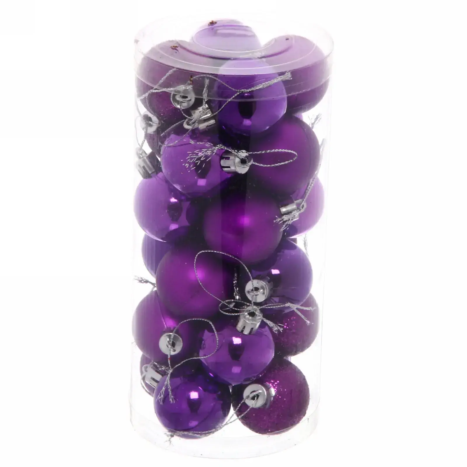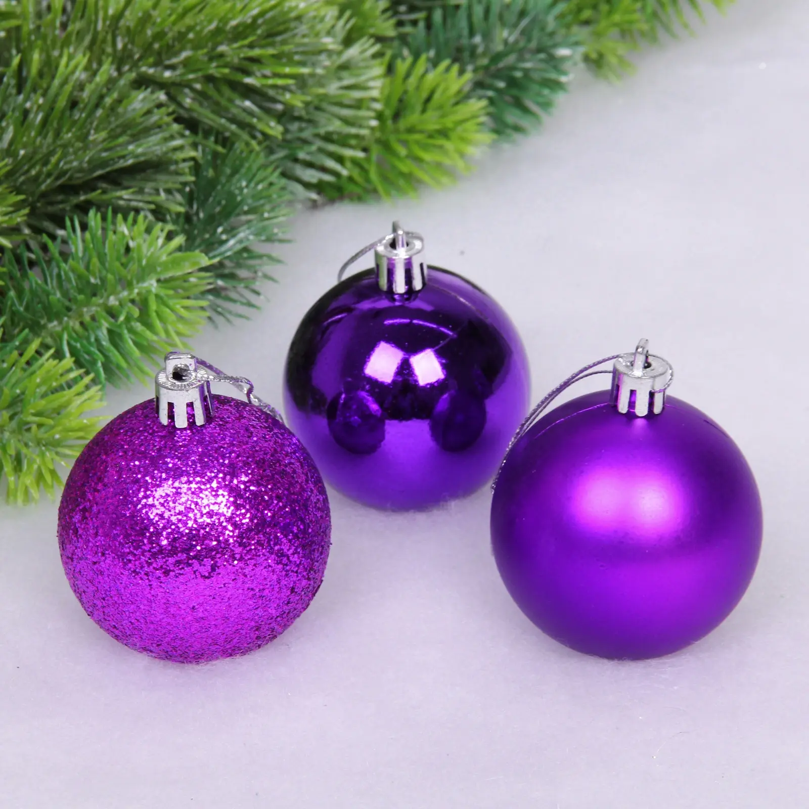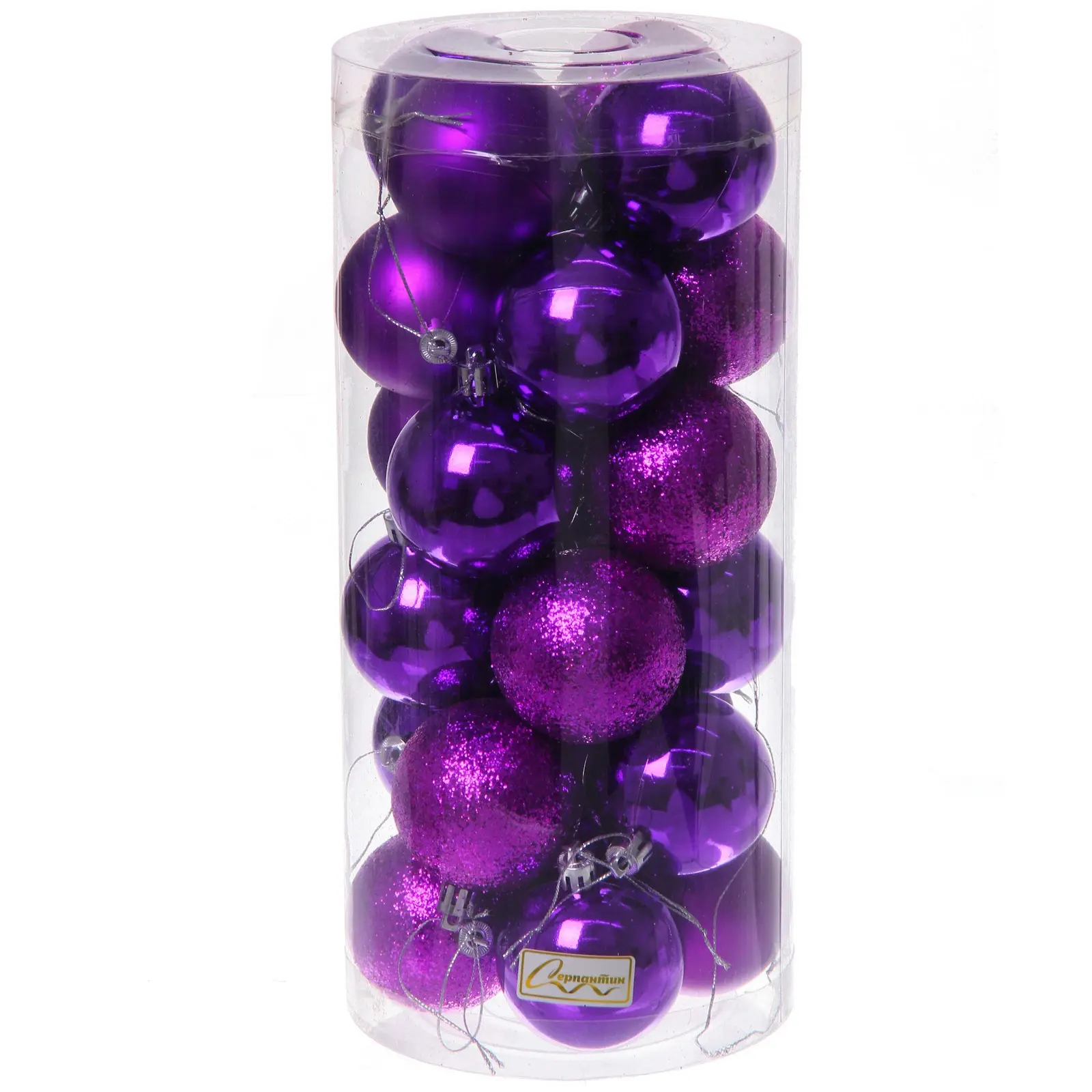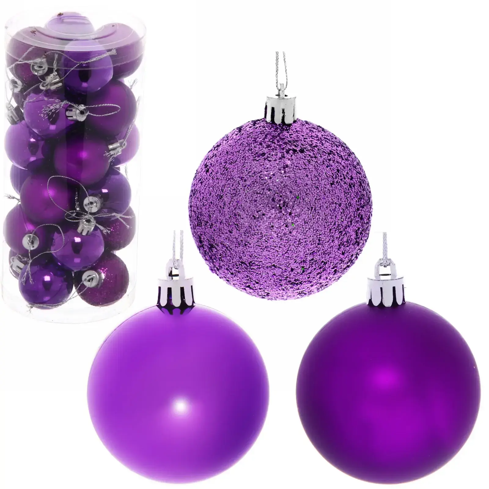 Новогодние шары 6 см (набор 24 шт) «Микс фактур», фиолетовый, пластик, для елки и декорирования