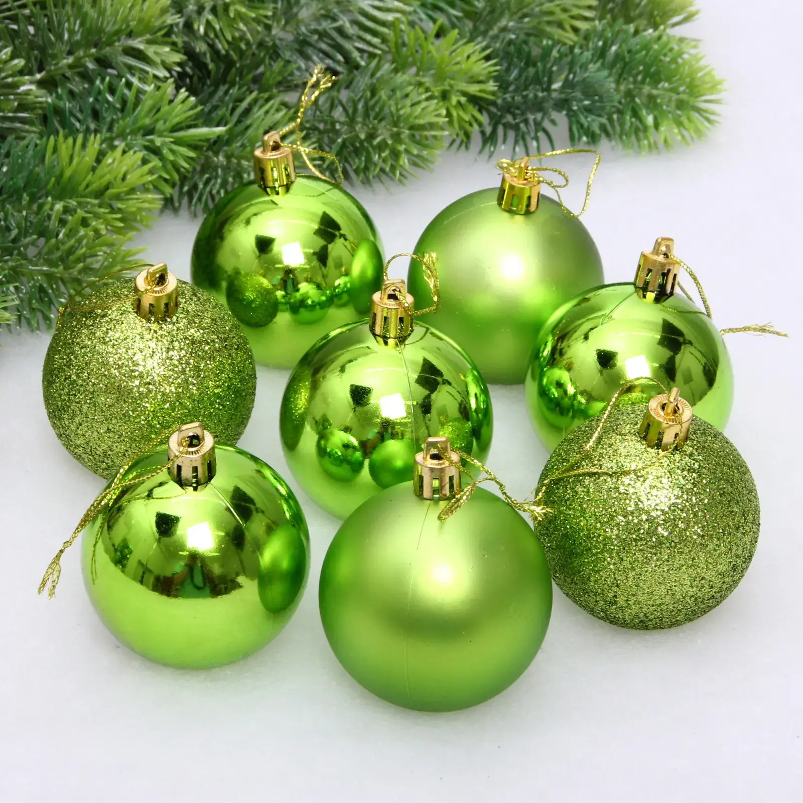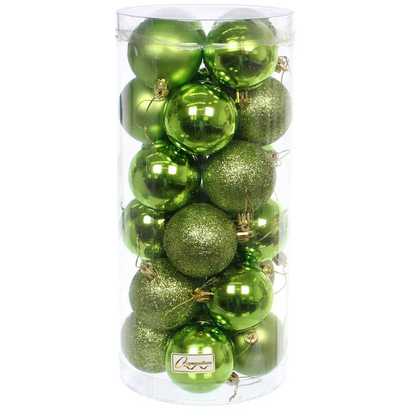 Новогодние шары 6 см (набор 24 шт) «Микс фактур», салатовый, пластик, для елки и декорирования