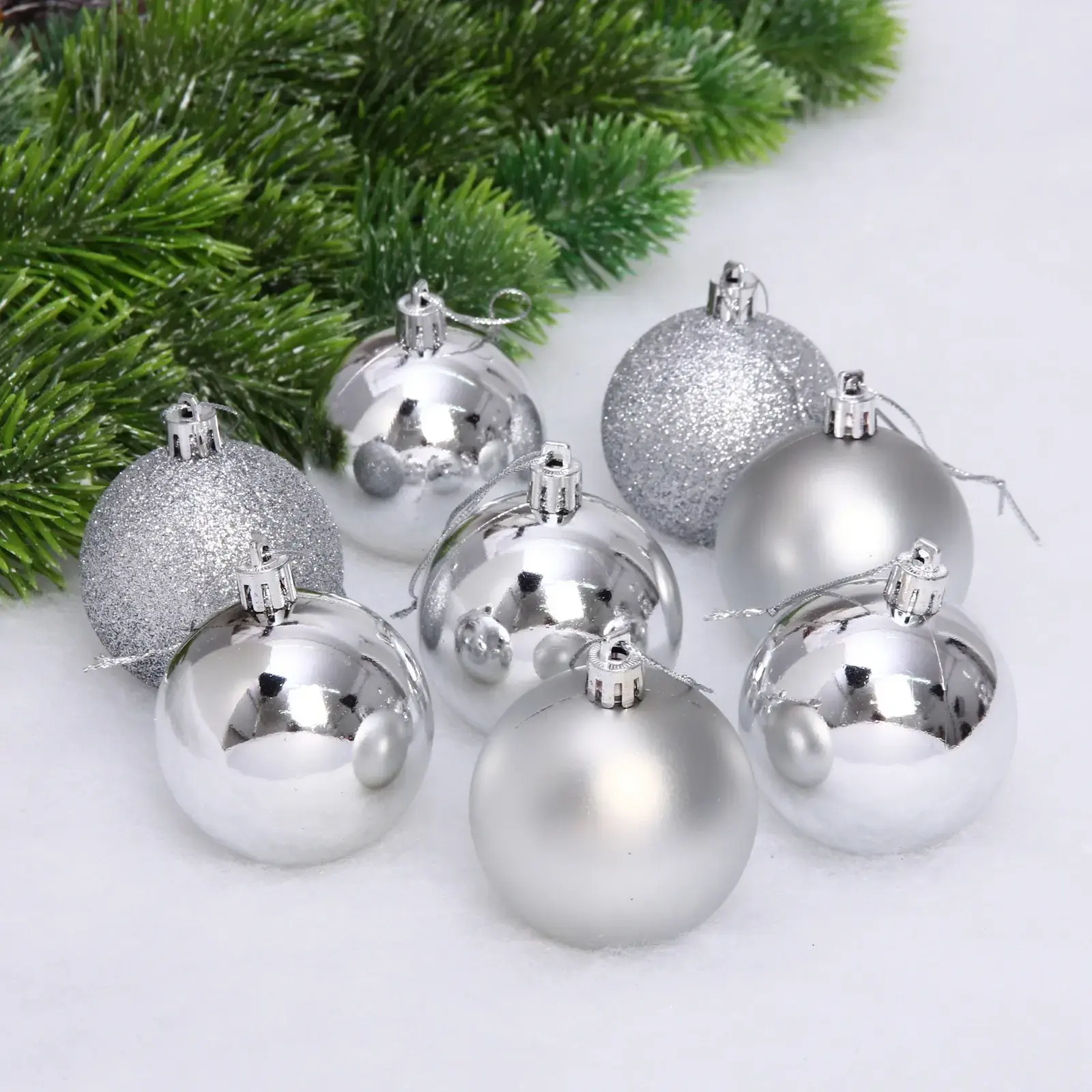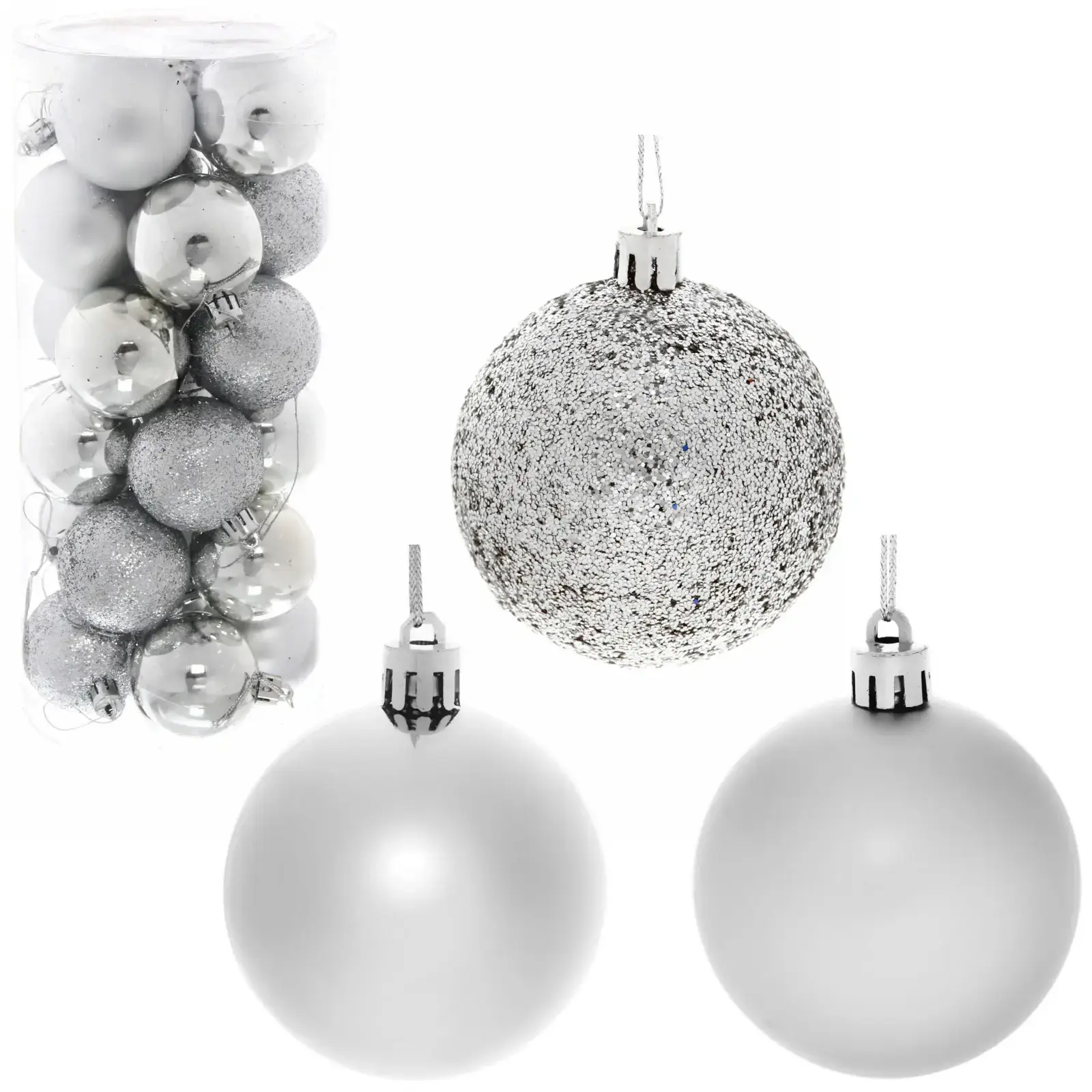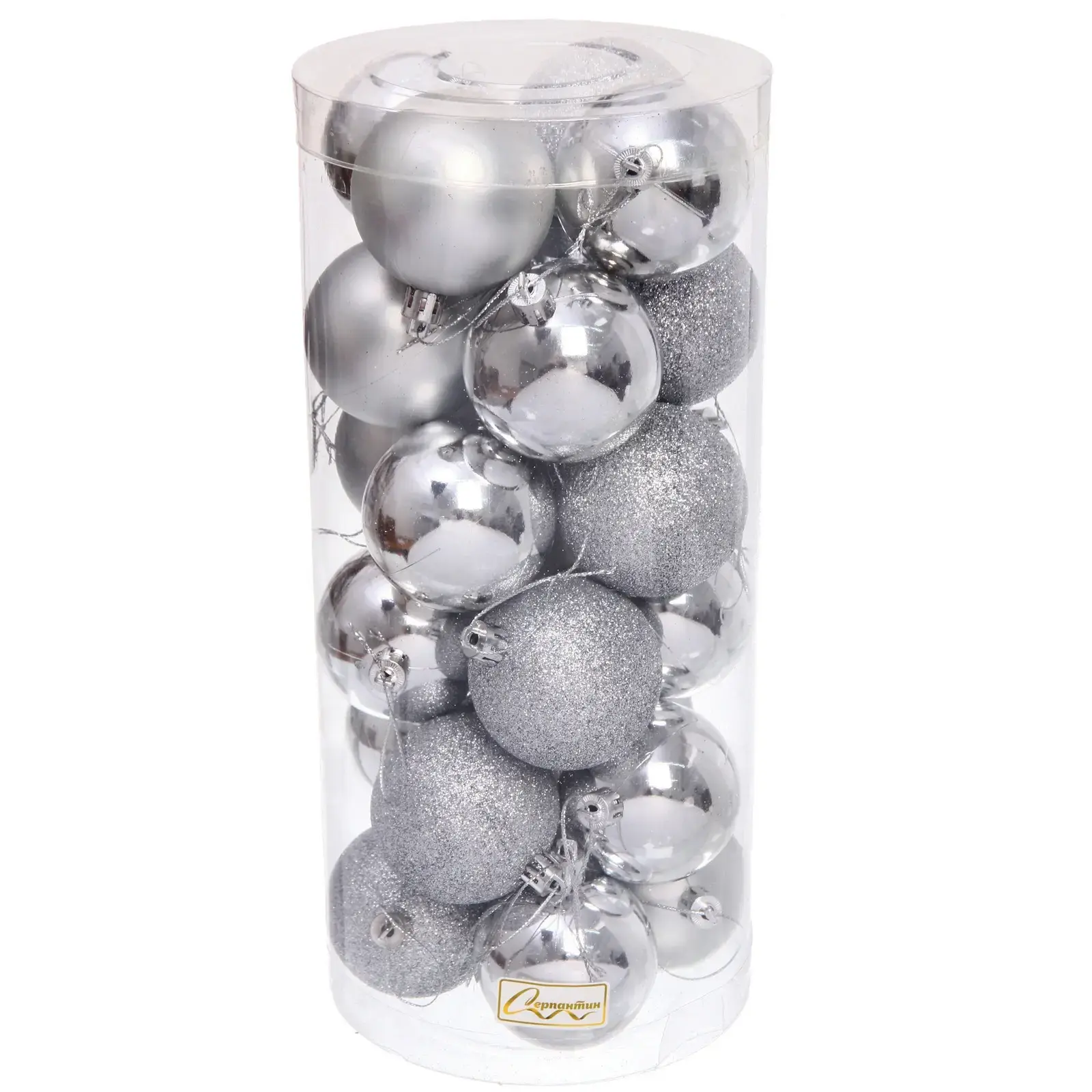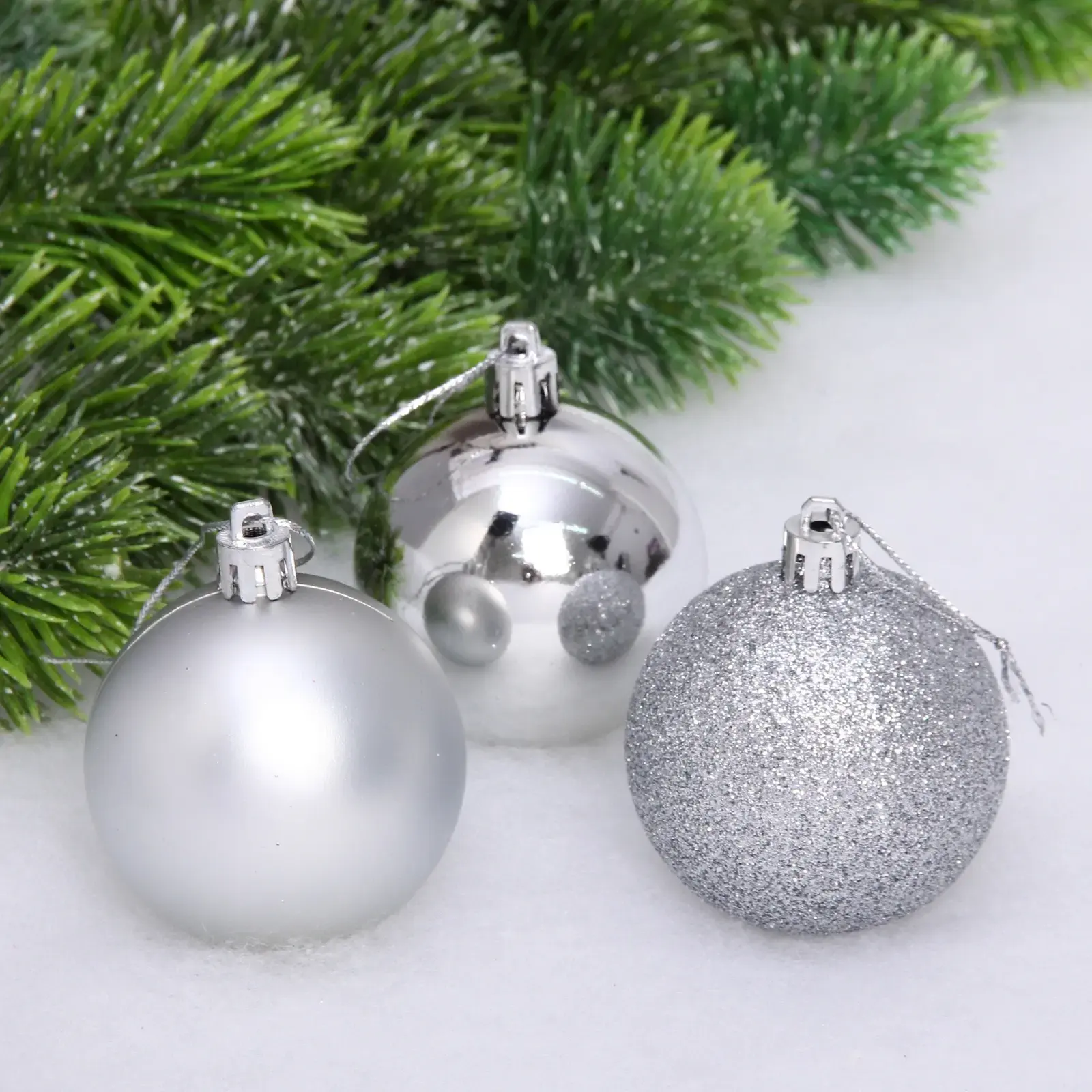 Новогодние шары 6 см (набор 24 шт) «Микс фактур», серебро, пластик, для елки и декорирования