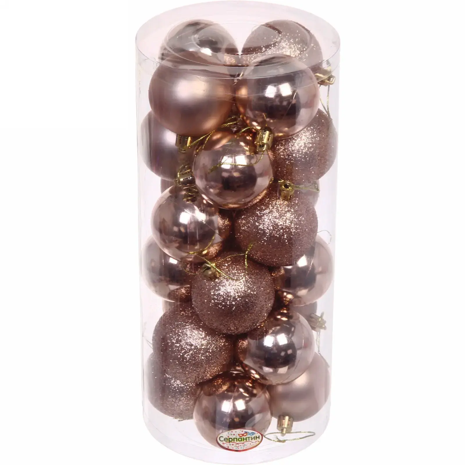 Новогодние шары — это не просто украшения, это символы волшебства и радости, которые наполняют ваш дом теплом и уютом. Набор из 24 шаров диаметром 6 см в цвете шампань с разнообразными фактурами станет идеальным дополнением к вашему новогоднему декору. Эти шары помогут вам создать уникальный стиль оформления вашей елки или праздничного интерьера.