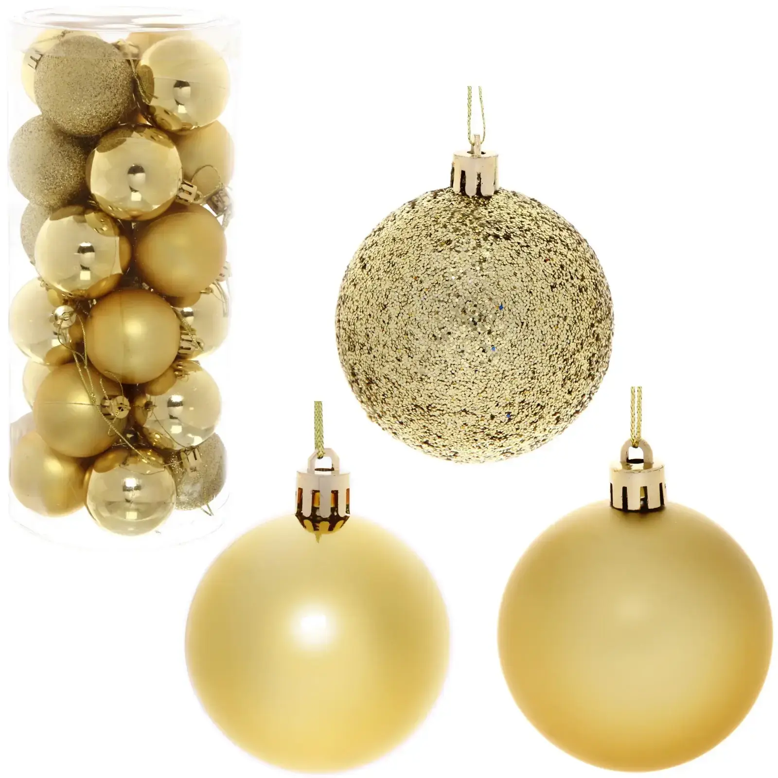 Новогодние шары — это не просто украшения, это символы волшебства и радости, которые наполняют наш дом теплом и уютом. Набор из 24 золотых шаров диаметром 6 см с различными текстурами станет идеальным дополнением к вашему новогоднему декору. Эти шары помогут вам создать уникальную атмосферу, которая порадует как детей, так и взрослых.