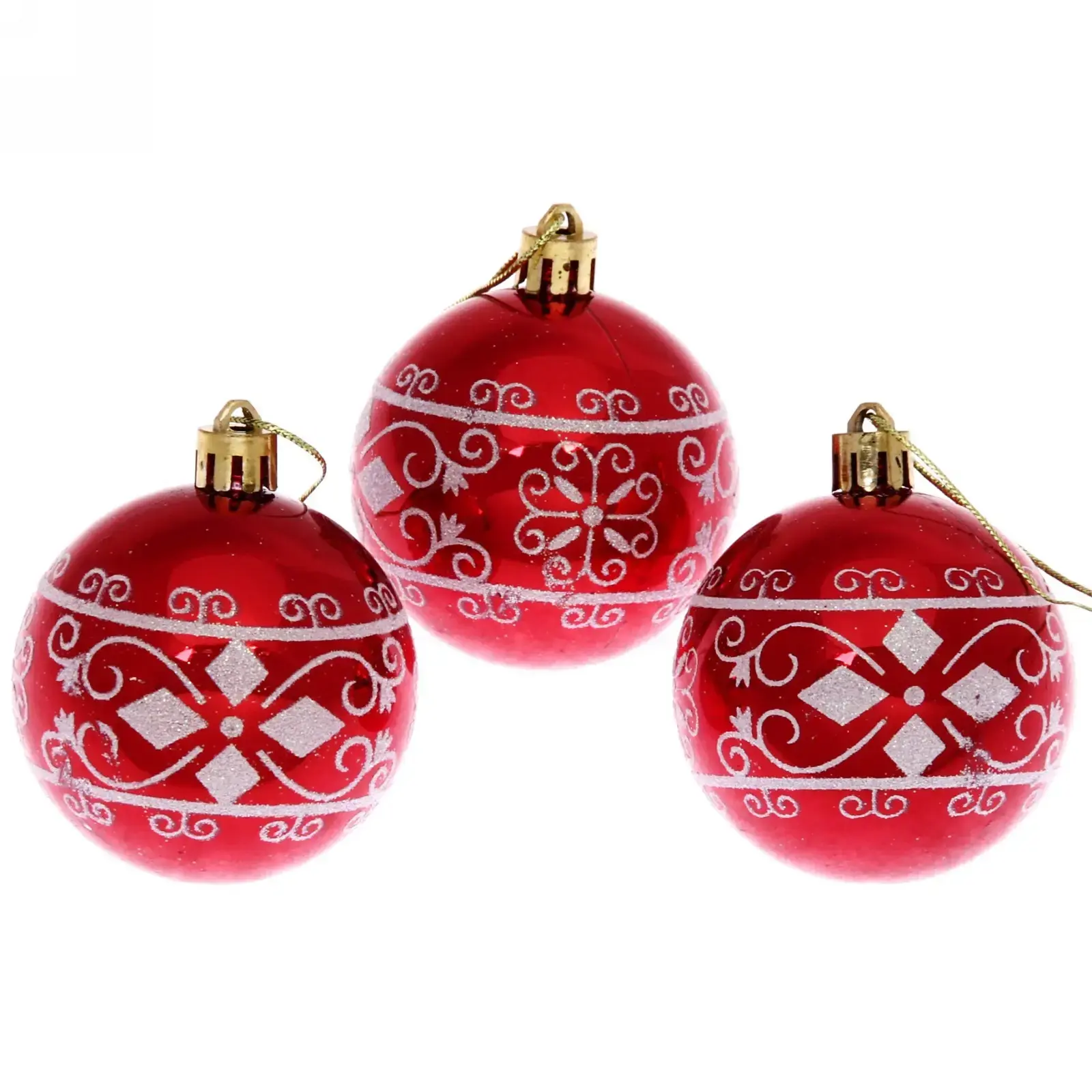 Новогодние шары 6 см (набор 3 шт) «Ажур», красный, пластик, для елки и декорирования