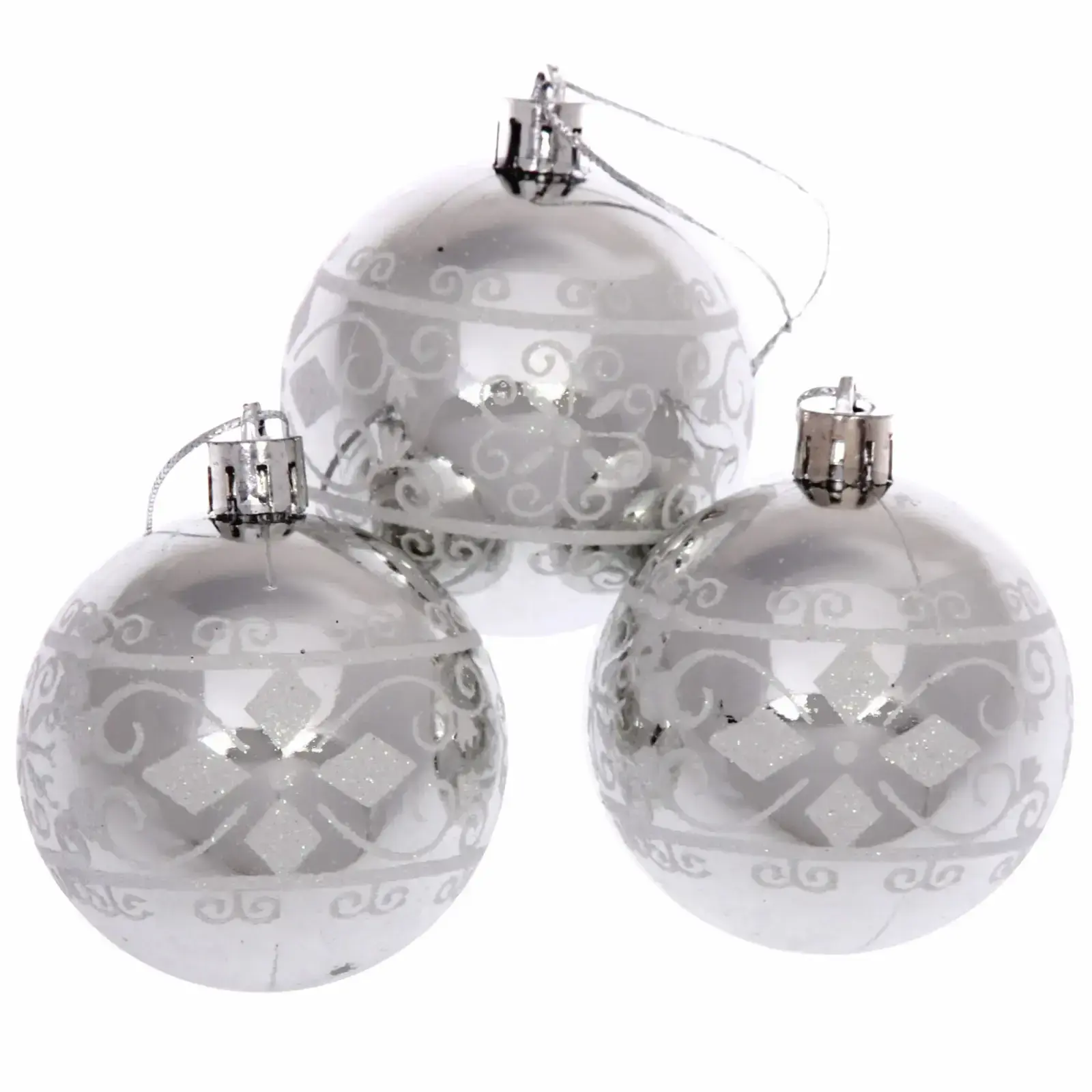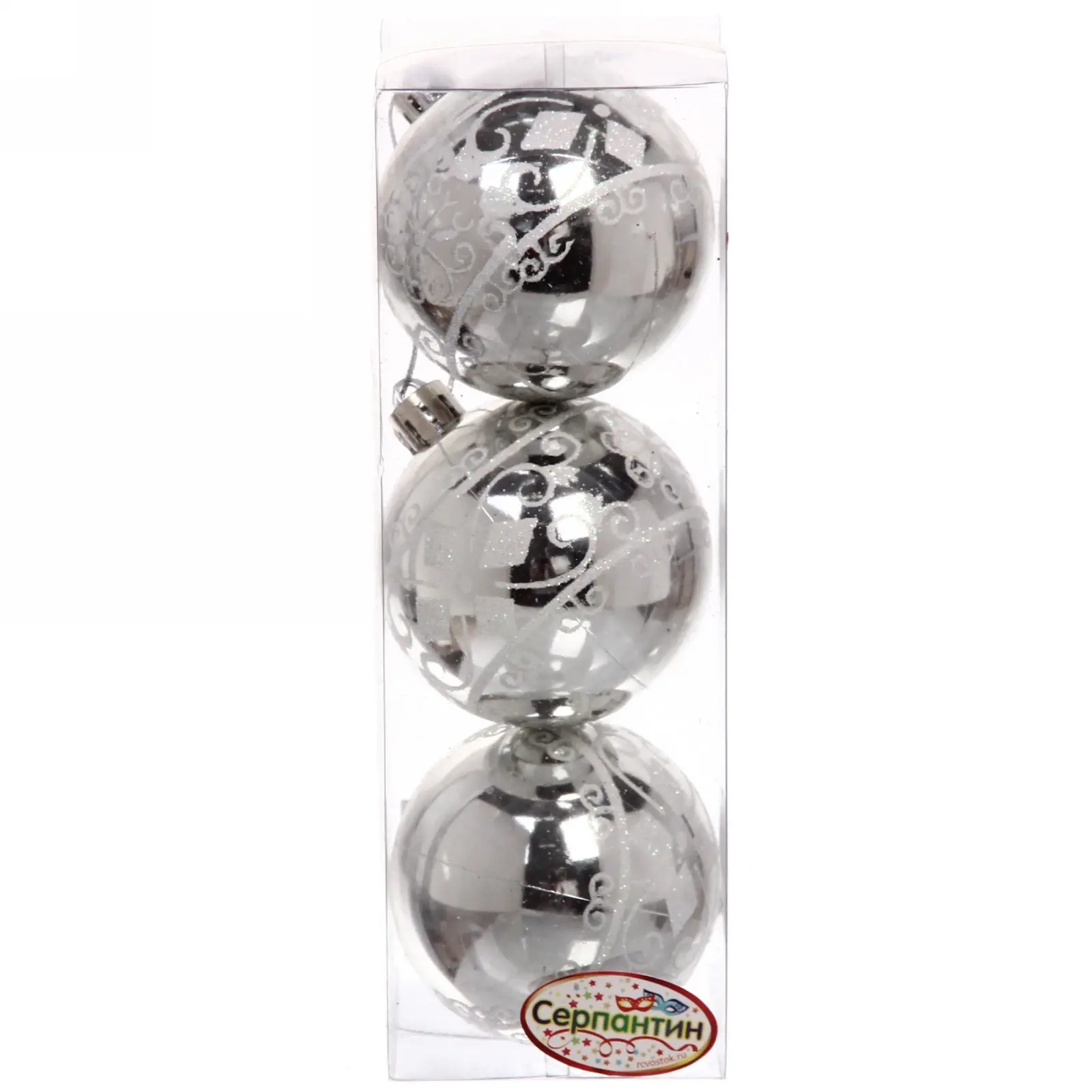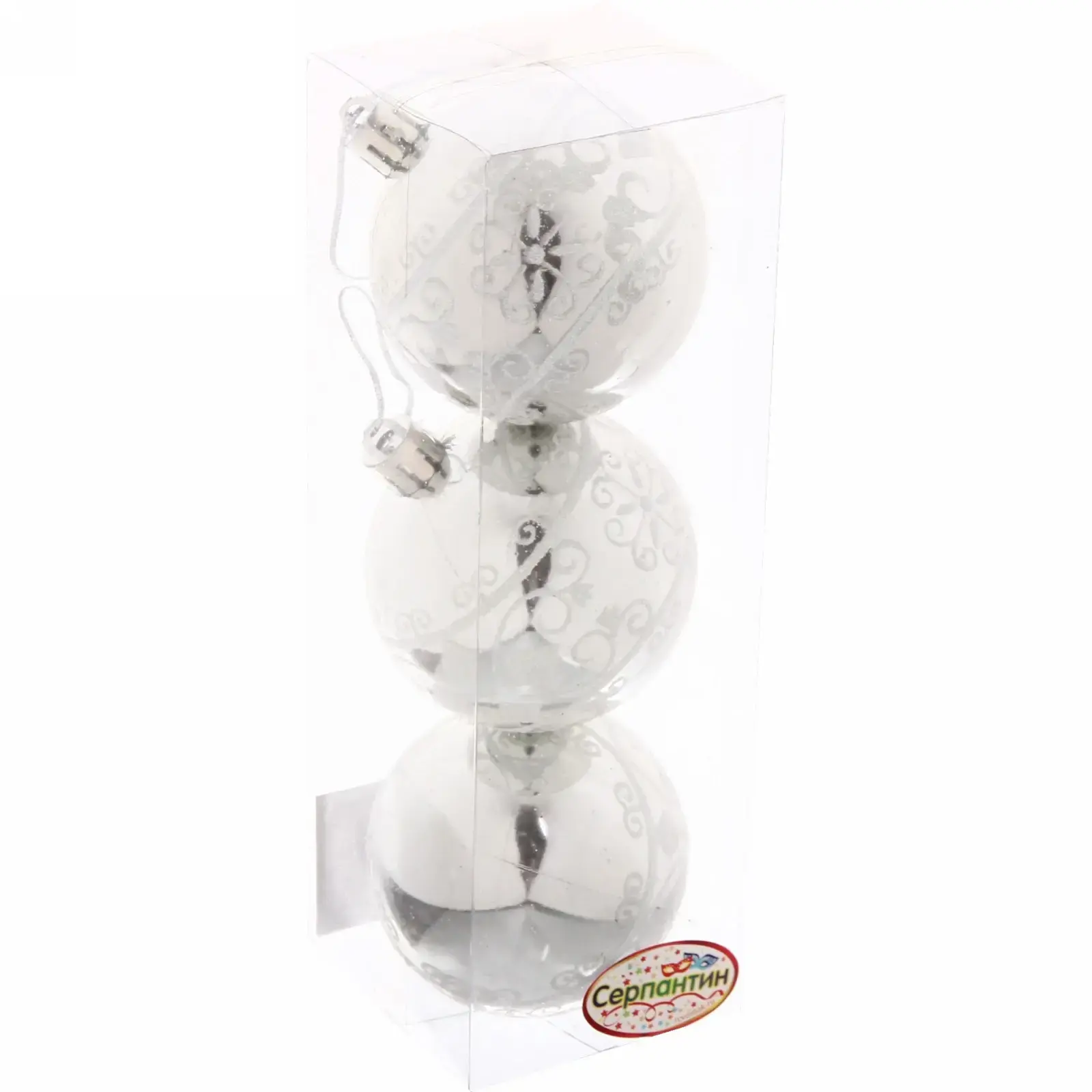Новогодние шары 6 см (набор 3 шт) «Ажур», серебро, пластик, для елки и декорирования
