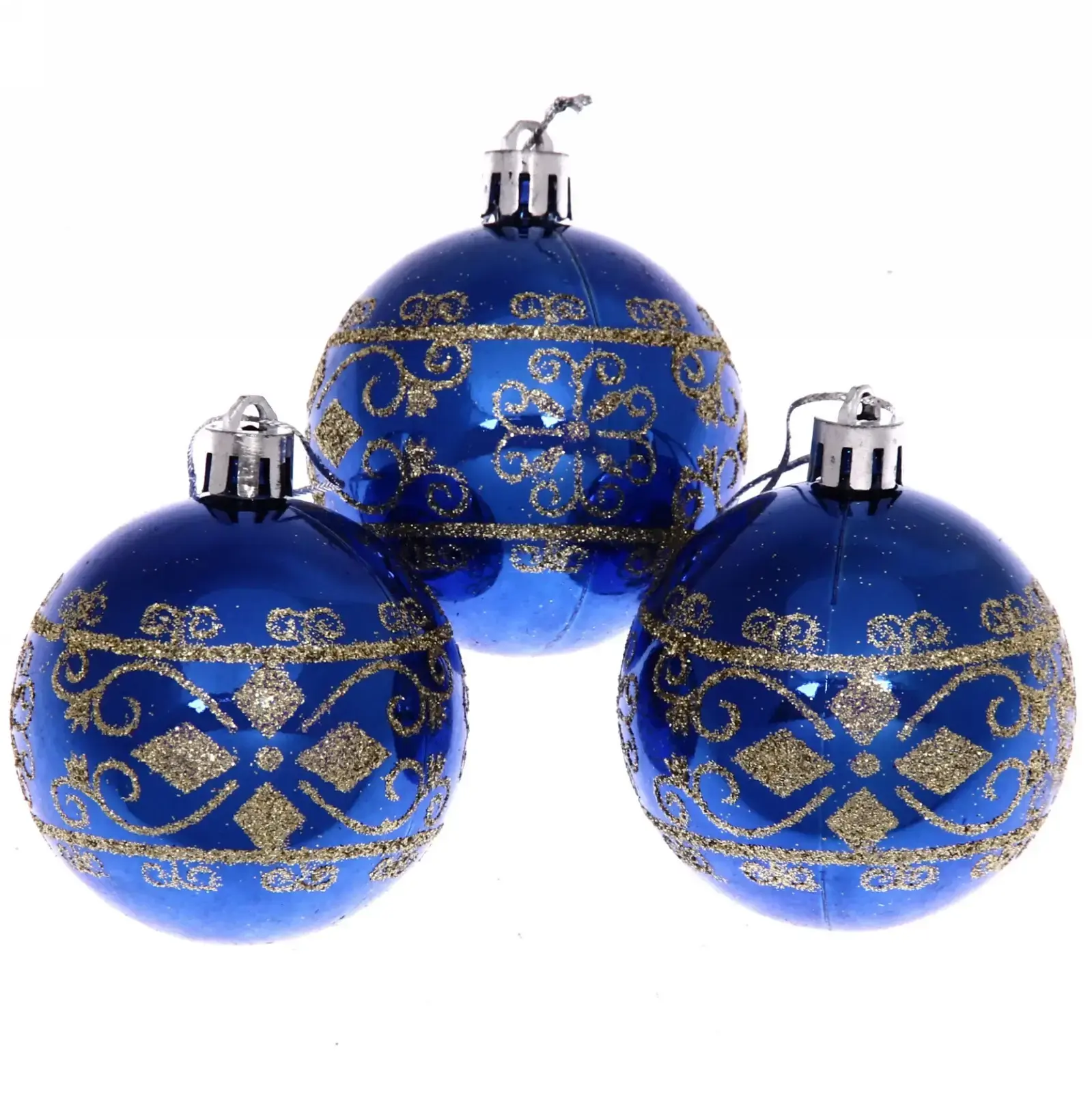 Эти новогодние шары не только украсят вашу елку, но и добавят атмосферу праздника в ваш дом. Их глубокий синий цвет в сочетании с золотыми узорами создаст эффектный акцент в любом интерьере. Каждый шар имеет гладкую блестящую поверхность, что придаёт им особую декоративность и элегантность.