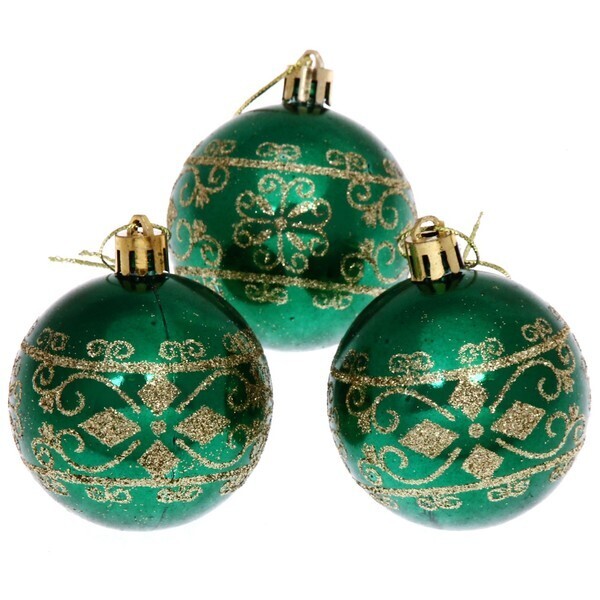 Эти новогодние шары станут идеальным украшением для вашей елки, добавляя атмосферу уюта и праздника. Их изысканный зеленый цвет в сочетании с золотыми узорами придаст вашему интерьеру стильный и элегантный вид. Каждый шар имеет гладкую поверхность и округлую форму, что делает их не только красивыми, но и практичными в использовании.
