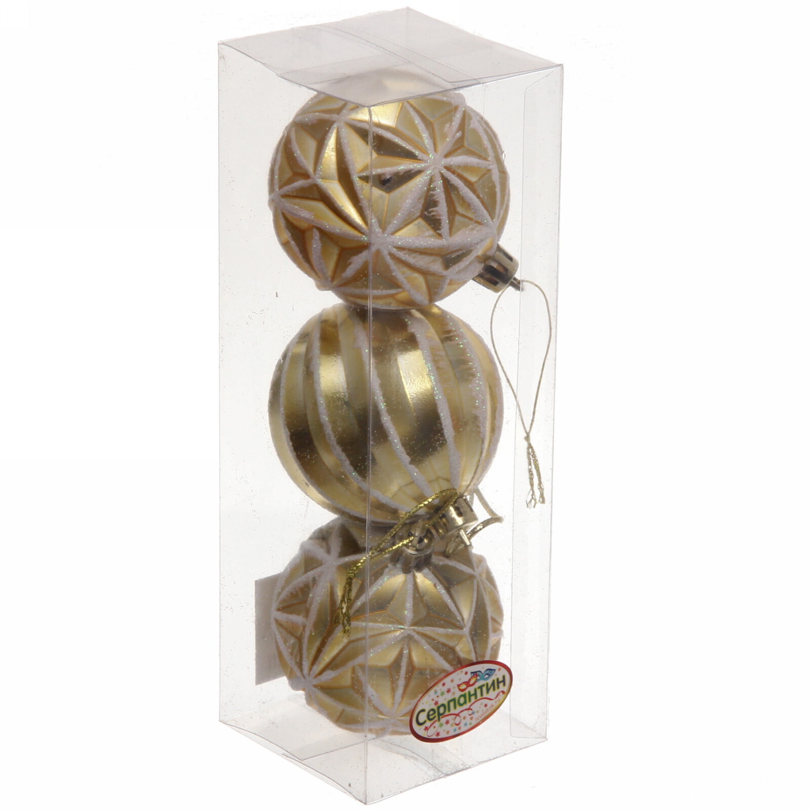 Новогодние шары 6 см (набор 3 шт) «Чудесные узоры», золото/белый, пластик, для елки и декорирования