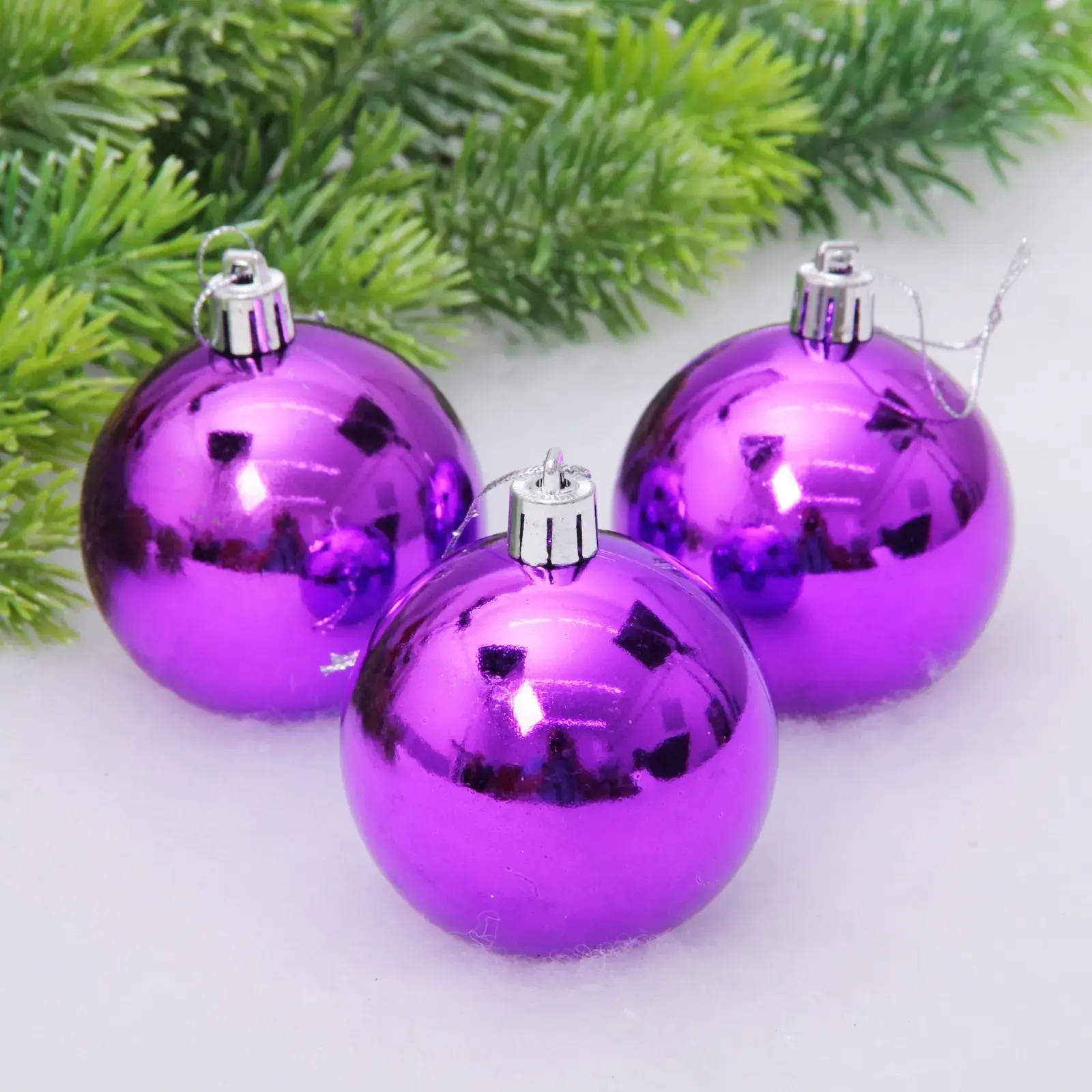 Создайте атмосферу праздника с минимальными усилиями! Набор из трех фиолетовых шаров станет идеальным украшением для вашей елки или интерьера.