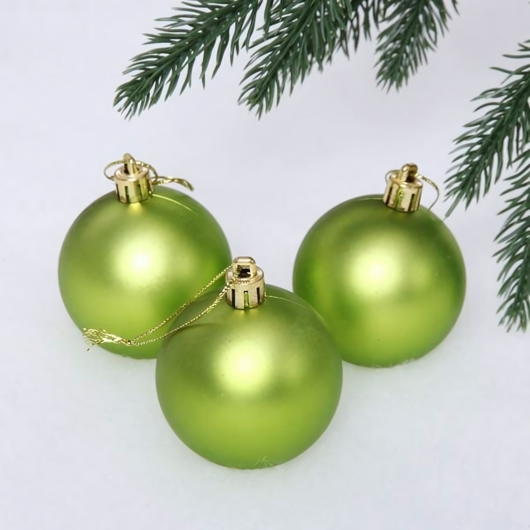 Изготовленные из качественного ПВХ, шары устойчивы к деформациям и сохраняют яркость цвета даже после нескольких сезонов хранения. Матовая отделка защищает от царапин, а салатовый оттенок легко комбинируется с классическими красными, белыми и золотыми элементами.