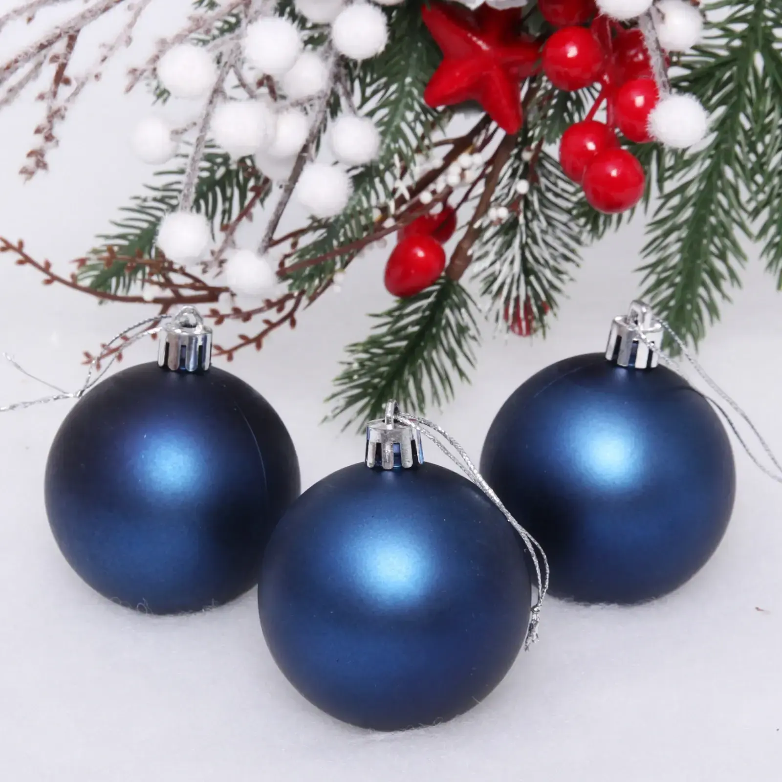 Новогодние шары 6 см (набор 3 шт) «Матовый», сапфир, пластик, для елки и декорирования