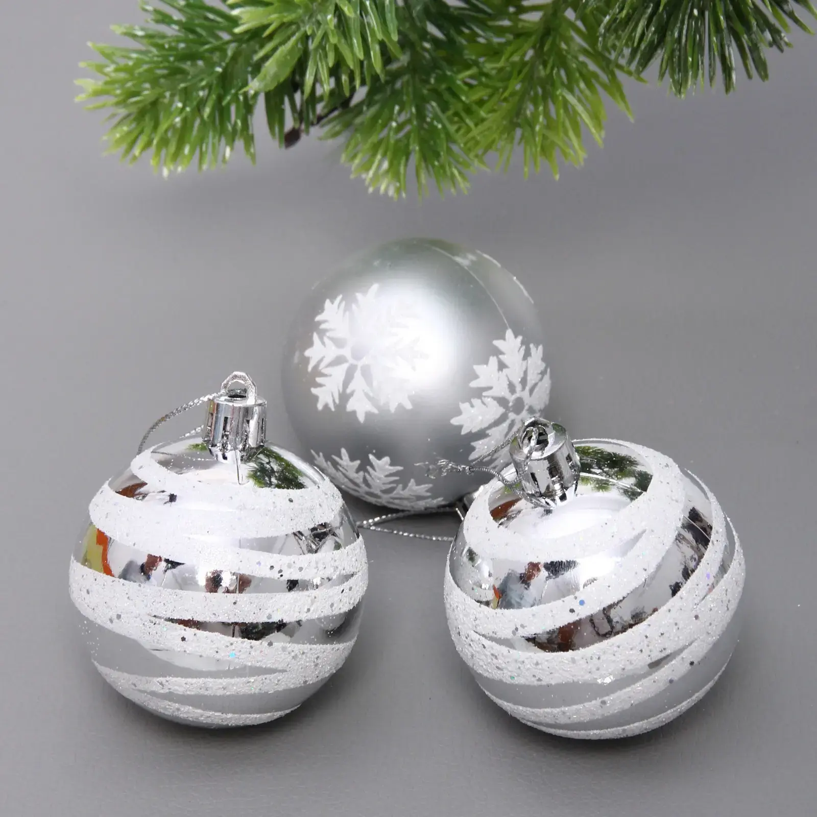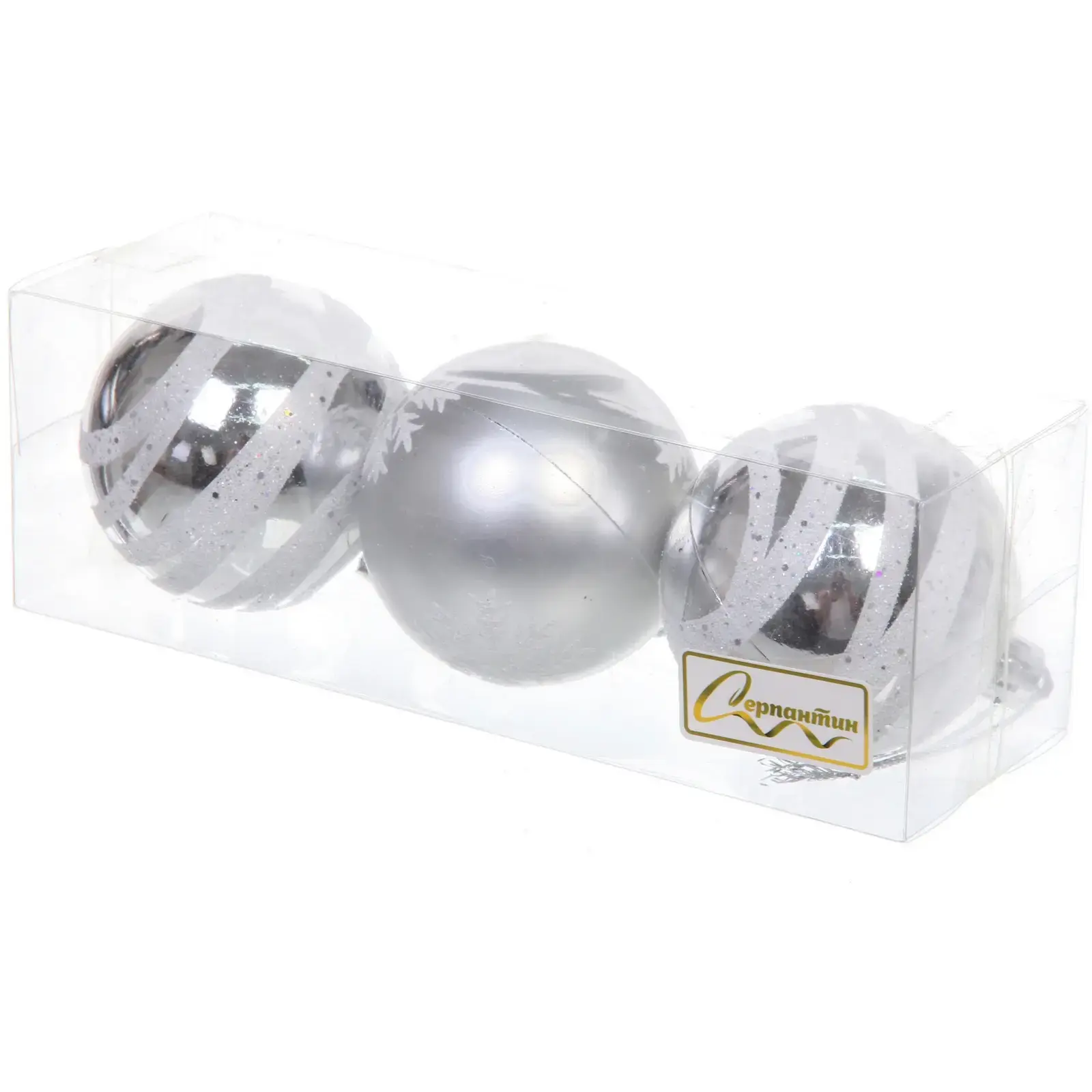 Погрузитесь в атмосферу праздника с набором новогодних шаров «Загадка». Эти шары, выполненные в серебристом цвете, добавят изысканности и блеска вашей новогодней елке. Каждый шар имеет уникальный дизайн: один украшен белыми снежинками, а два других — белыми полосами с блестками. Они идеально подойдут для создания праздничного настроения и станут отличным дополнением к вашему новогоднему декору.