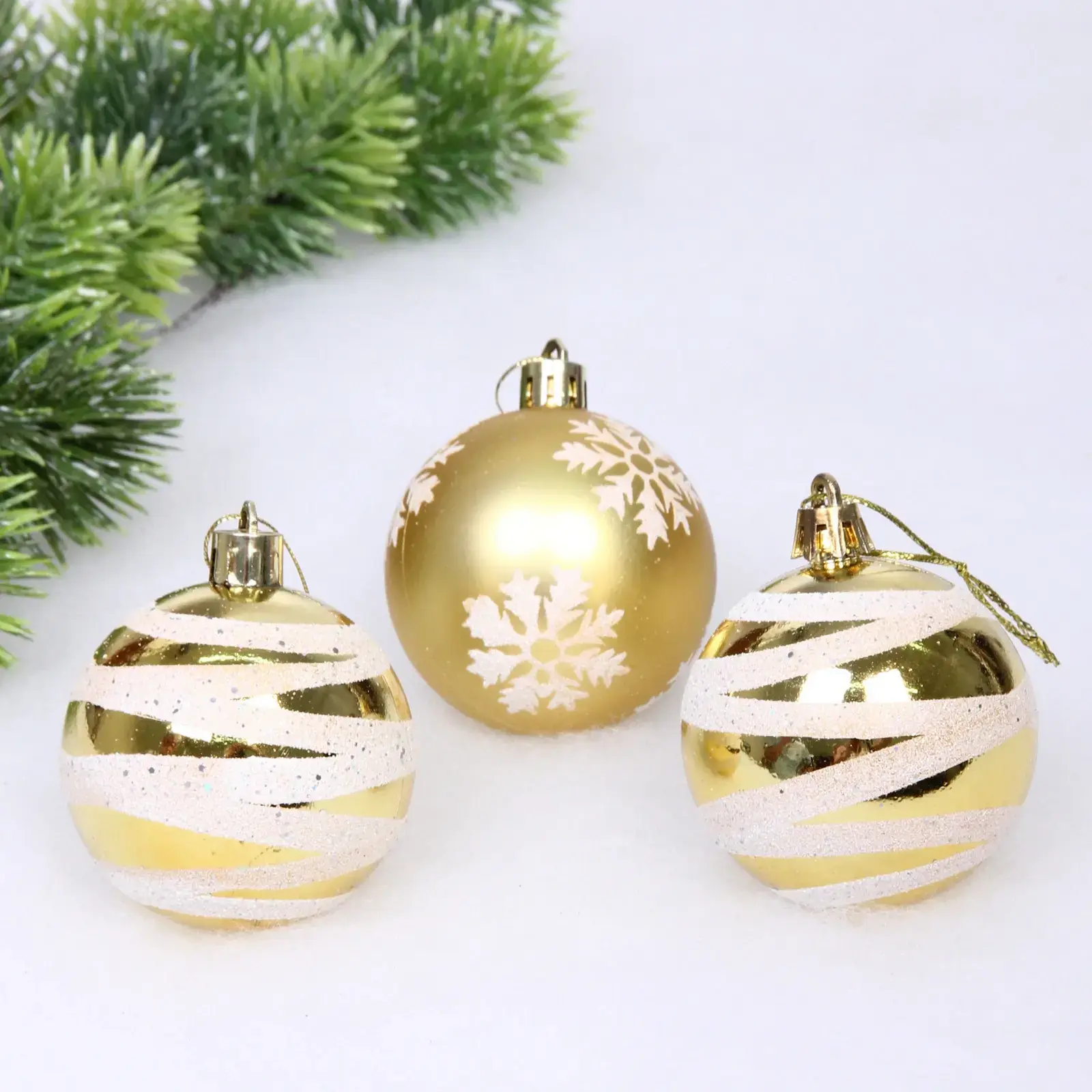 Каждый шар имеет стандартный размер 6 см, что делает их универсальными для любого стиля оформления. Золотистый цвет с белыми элементами прекрасно сочетается с другими новогодними украшениями, создавая гармоничный и стильный вид. Упаковка прозрачная, что позволяет увидеть все шары и оценить их красоту еще до покупки.