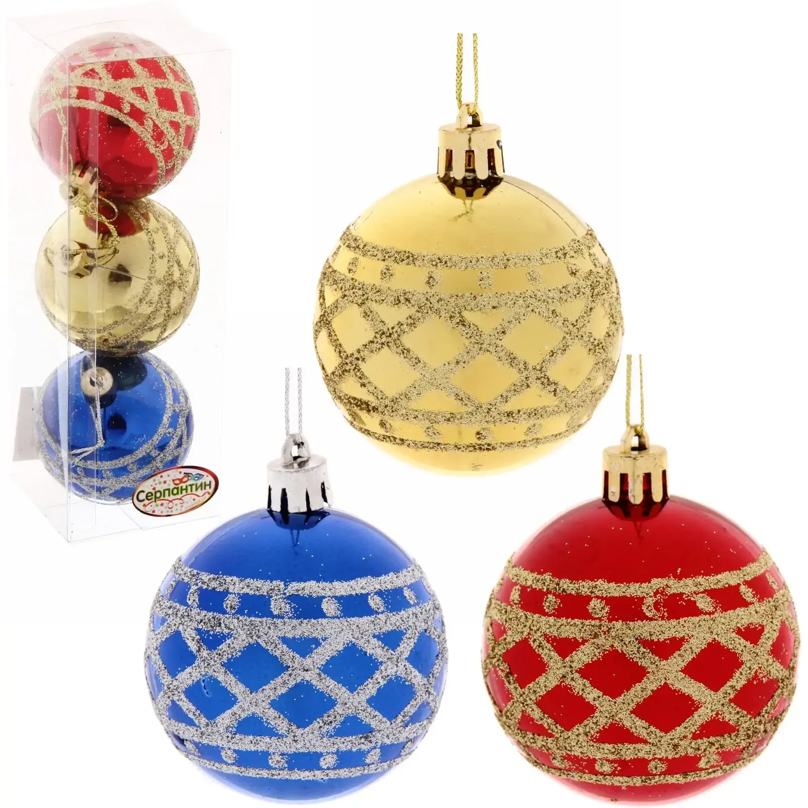 Три изящных шара в насыщенных цветах с мерцающим узором станут идеальным украшением для новогодней елки или интерьера. Каждый элемент набора выполнен из прочного пластика, который гарантирует безопасность и долговечность декора.