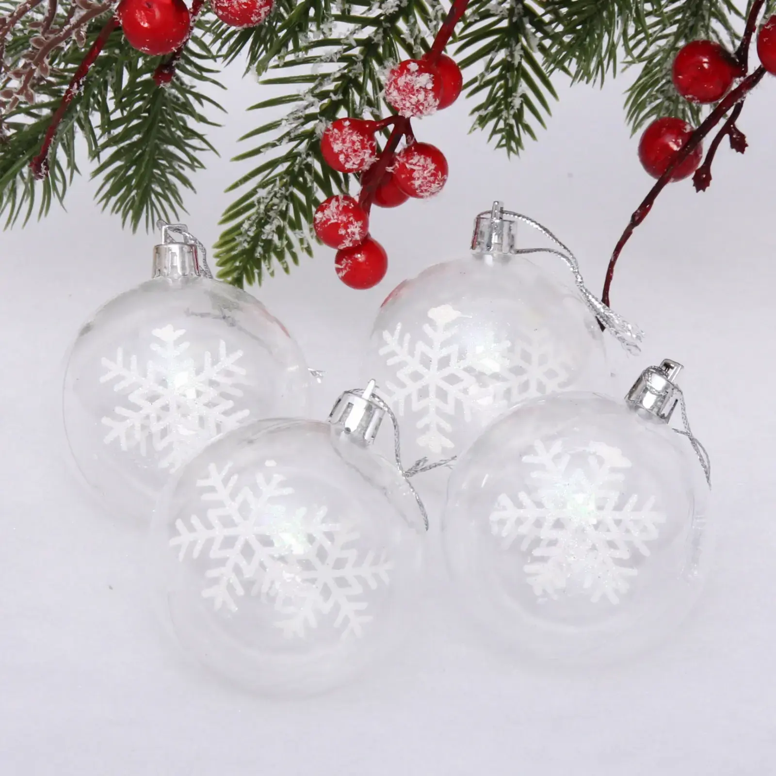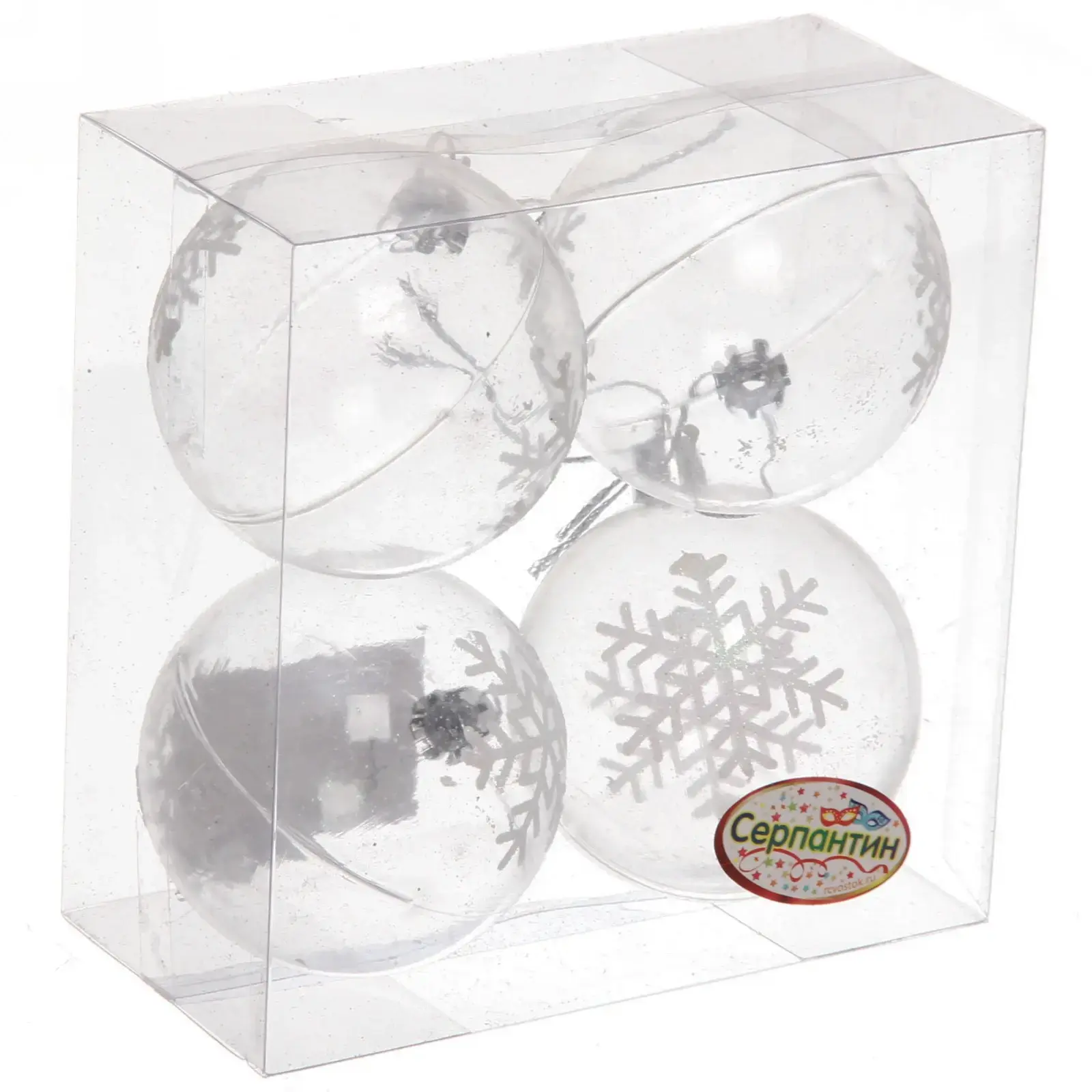 Эти новогодние шары станут идеальным украшением для вашей елки, добавляя атмосферу праздника и уюта в ваш дом. Каждый шар диаметром 6 см выполнен из прочного пластика и украшен белыми снежинками, что придаёт им особый шарм и элегантность. Прозрачный материал позволяет свету красиво преломляться, создавая эффект сияния и волшебства.