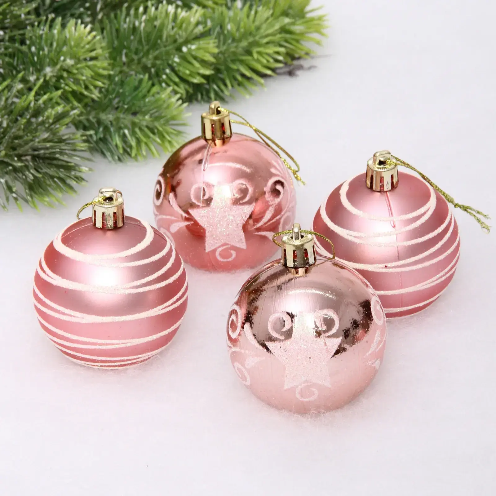 Погрузитесь в атмосферу праздника с набором новогодних шаров «Снежная дымка». Эти шары диаметром 6 см, выполненные в нежном розовом золоте, добавят изысканности и уюта вашему новогоднему декору. Каждый шар украшен уникальными узорами, что делает их идеальными для создания стильной и праздничной атмосферы.