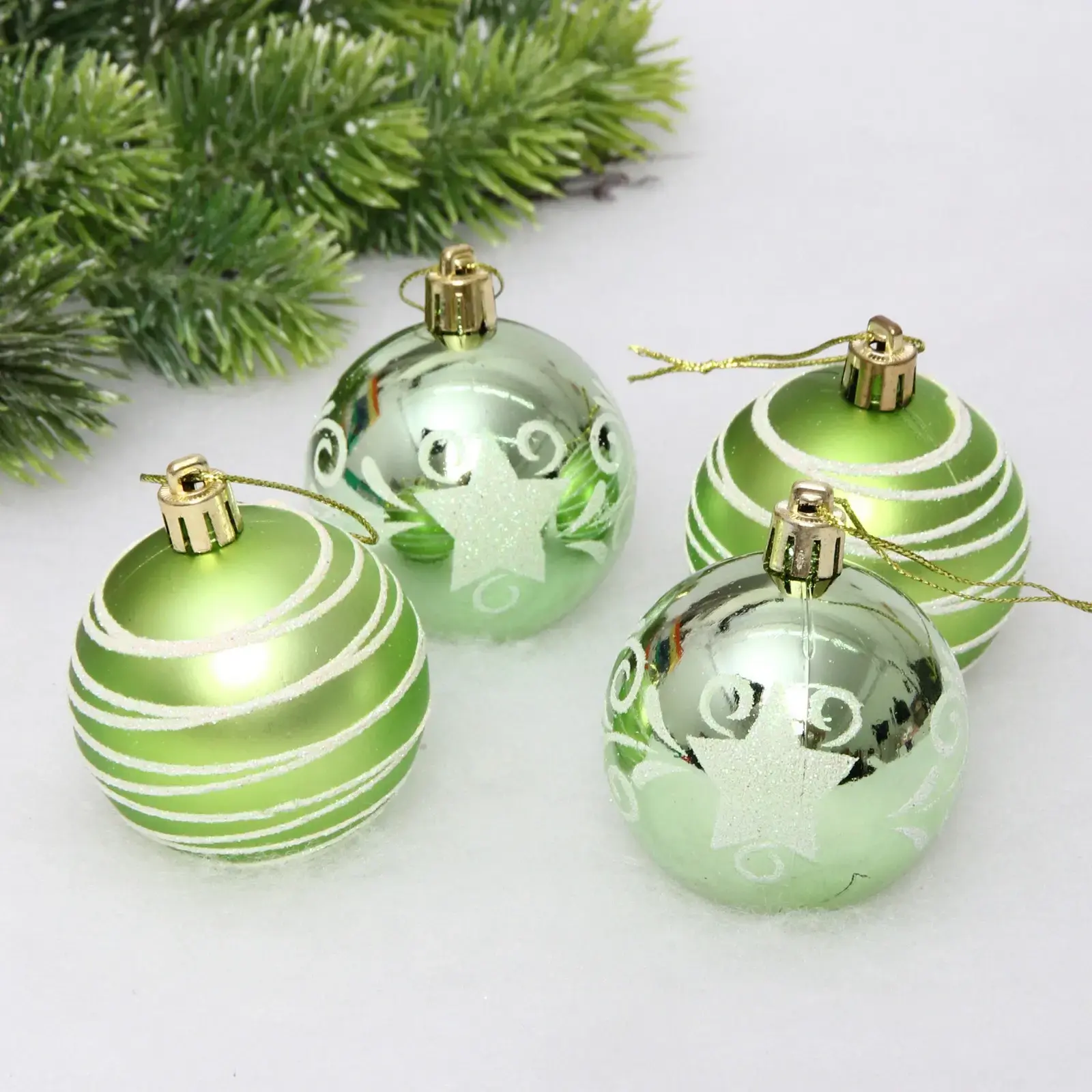 Погрузитесь в атмосферу праздника с новогодними шарами «Снежная дымка». Эти шары диаметром 6 см, выполненные в нежных салатовых оттенках, добавят изысканности и уюта вашему новогоднему декору. Каждый шарик в наборе из 4 штук имеет уникальный дизайн, который прекрасно сочетается с другими украшениями, создавая гармоничное оформление вашей ёлки.