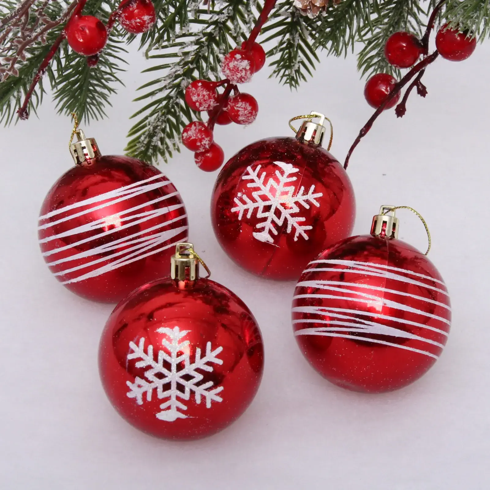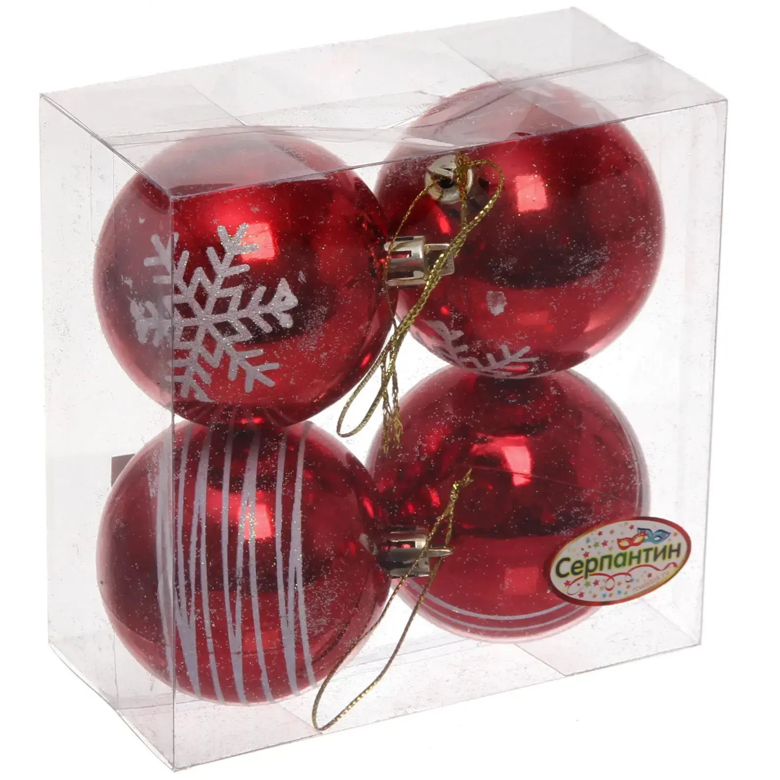 Каждый шар имеет диаметр 6 см и выполнен в красном цвете с белыми узорами, включая снежинки и полосы. Упаковка из прозрачного материала позволяет видеть содержимое, что делает набор отличным подарком. Эти шары идеально подойдут для создания праздничного настроения и станут незаменимым элементом вашего новогоднего декора.