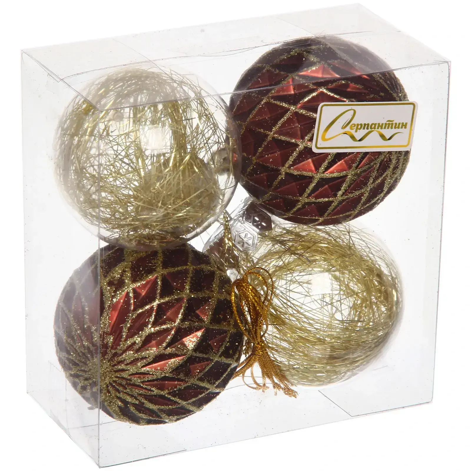 Диаметр каждого шара — 6 см, форма классическая круглая. Поверхность устойчивa к повреждениям, а насыщенные цвета не теряют яркости со временем. Набор предназначен для многократного использования и сохранит свой привлекательный вид к следующему Новому году.