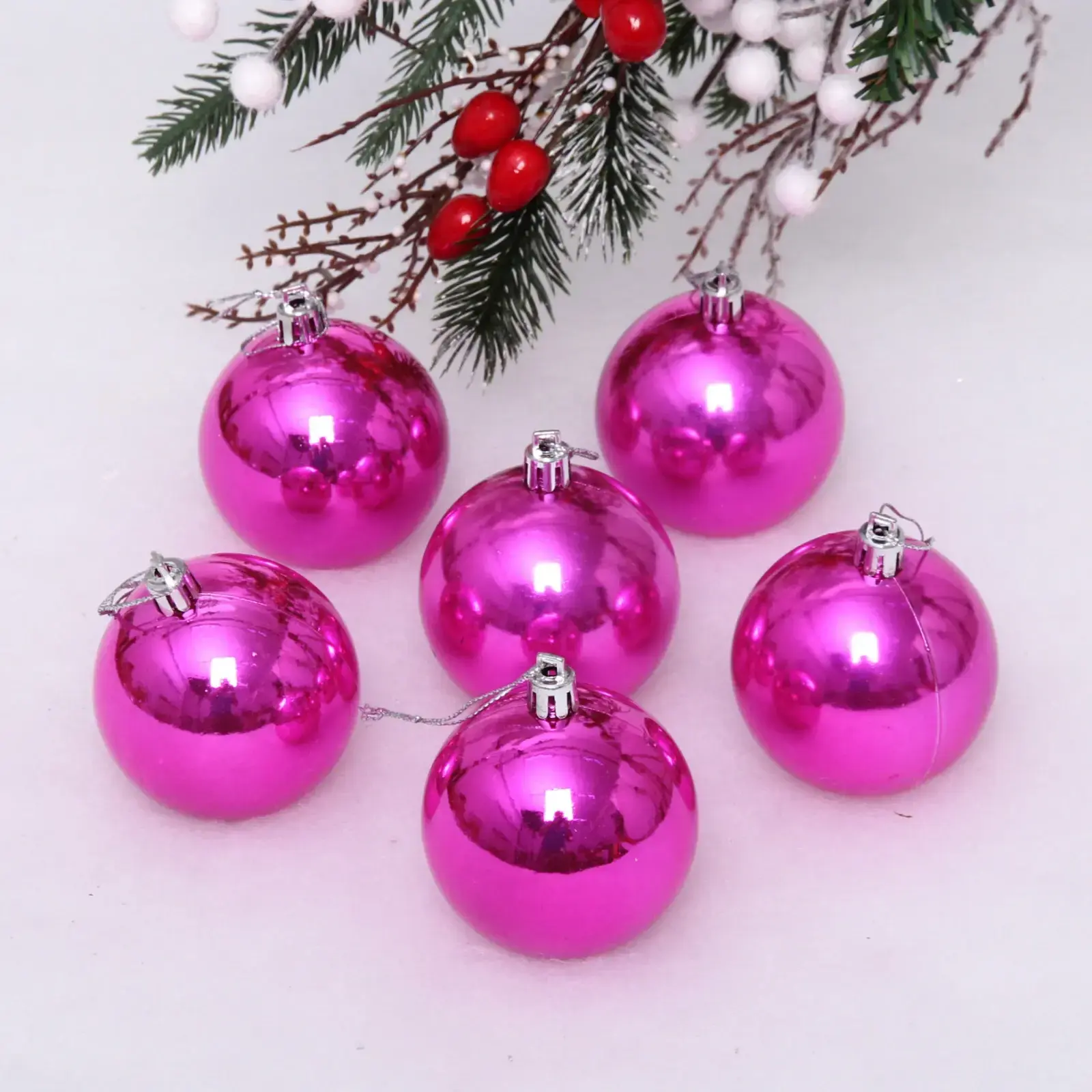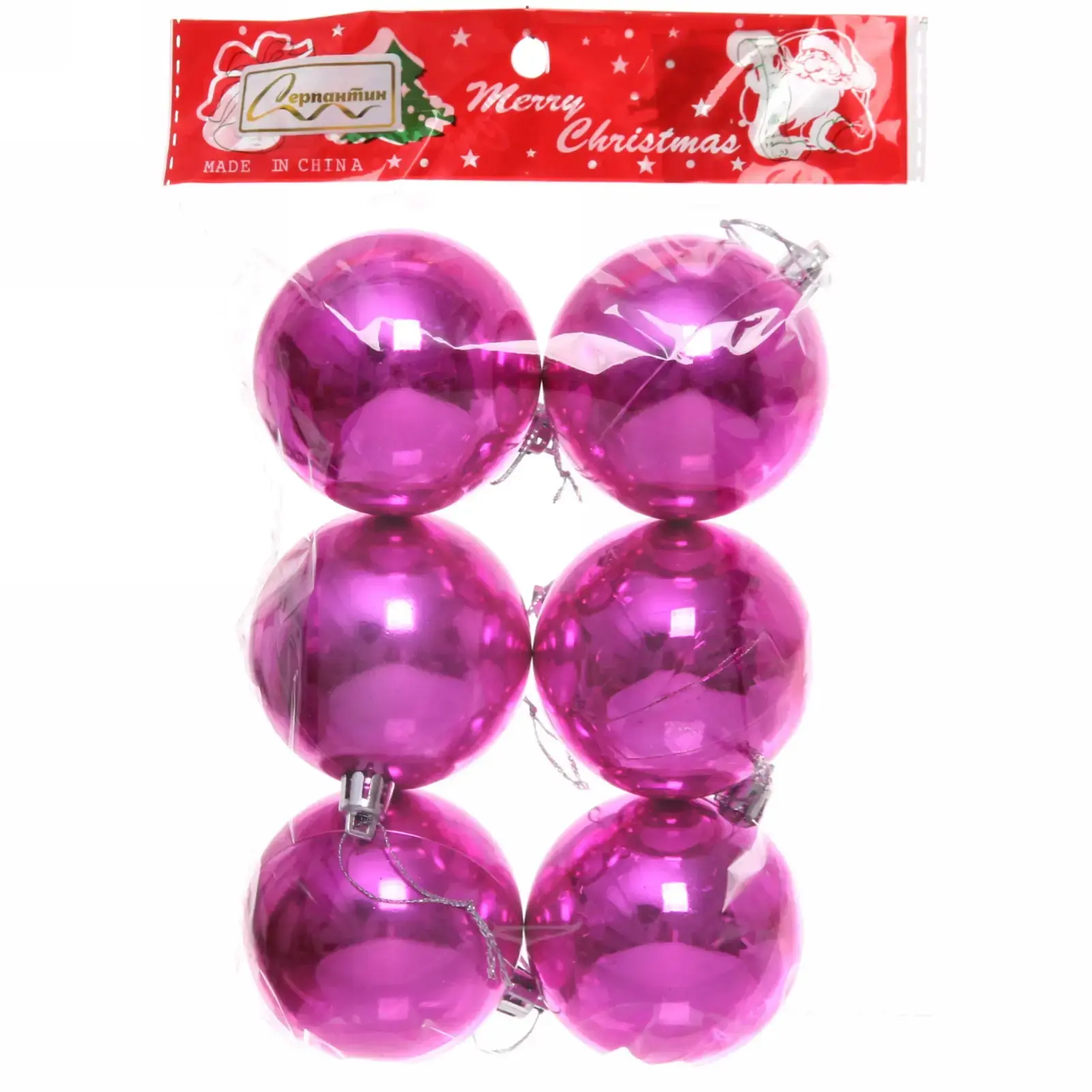 Новогодние шары 6 см (набор 6 шт) «Глянец», Розовый (пакет), пластик, для елки и декорирования
