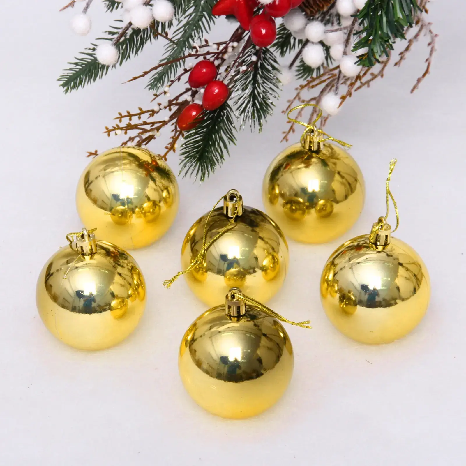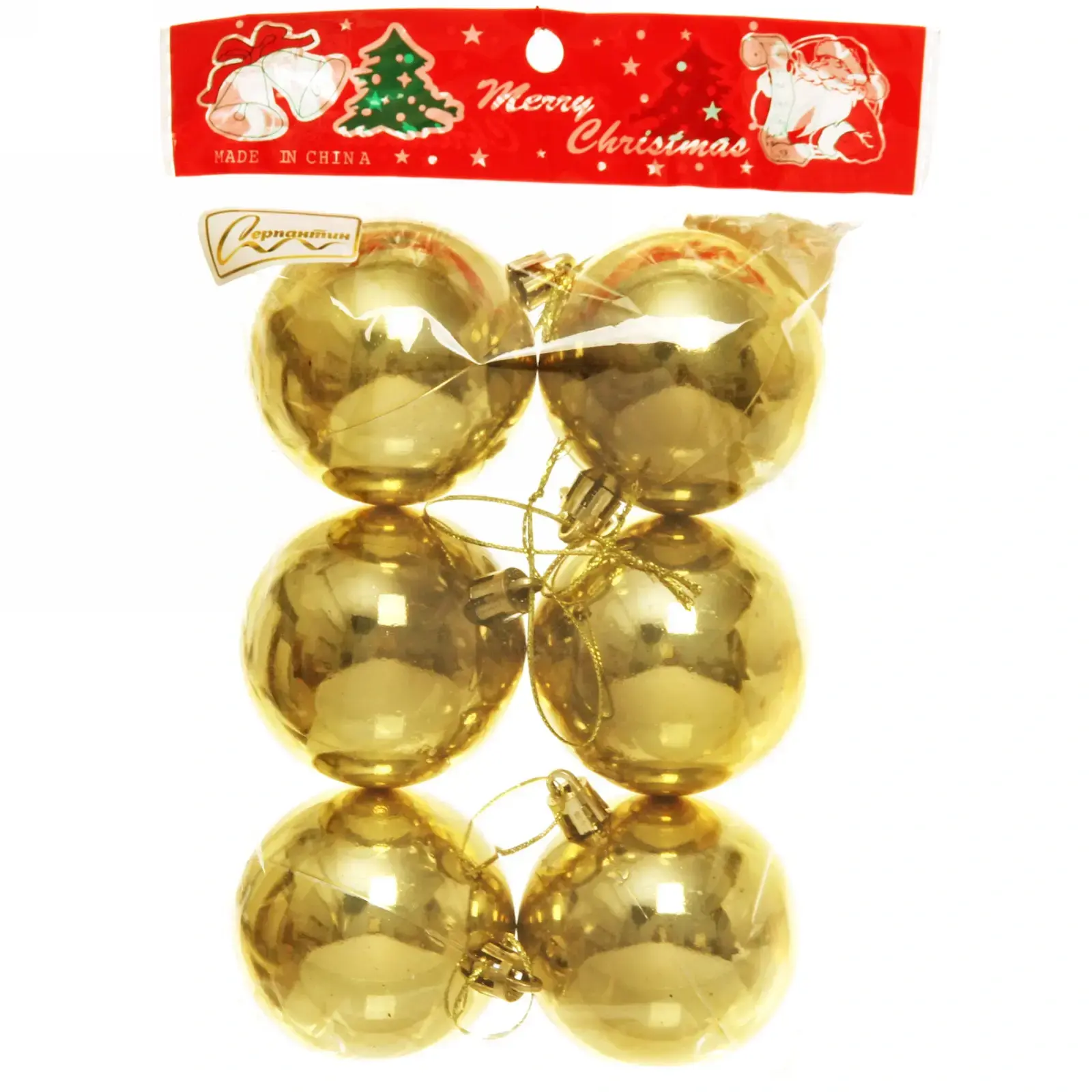 Новогодние шары 6 см (набор 6 шт) «Глянец», Золотой (пакет), пластик, для елки и декорирования