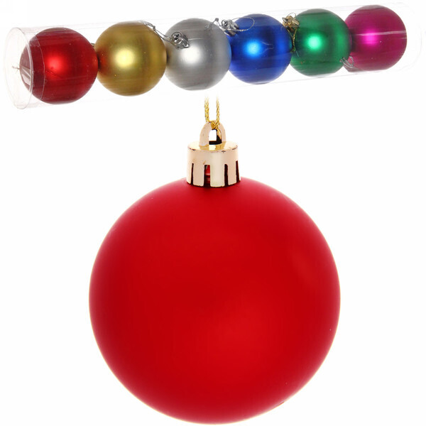 Новогодние шары 6 см (набор 6 шт) «Матовый», микс, пластик, для елки и декорирования