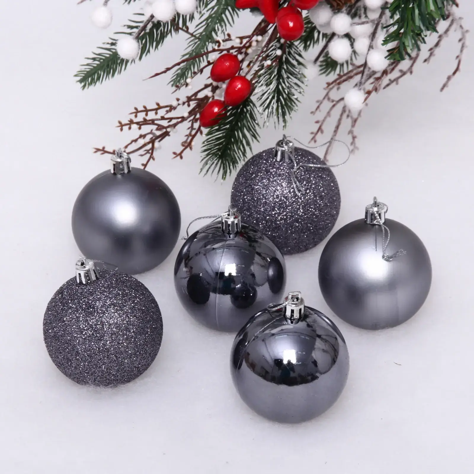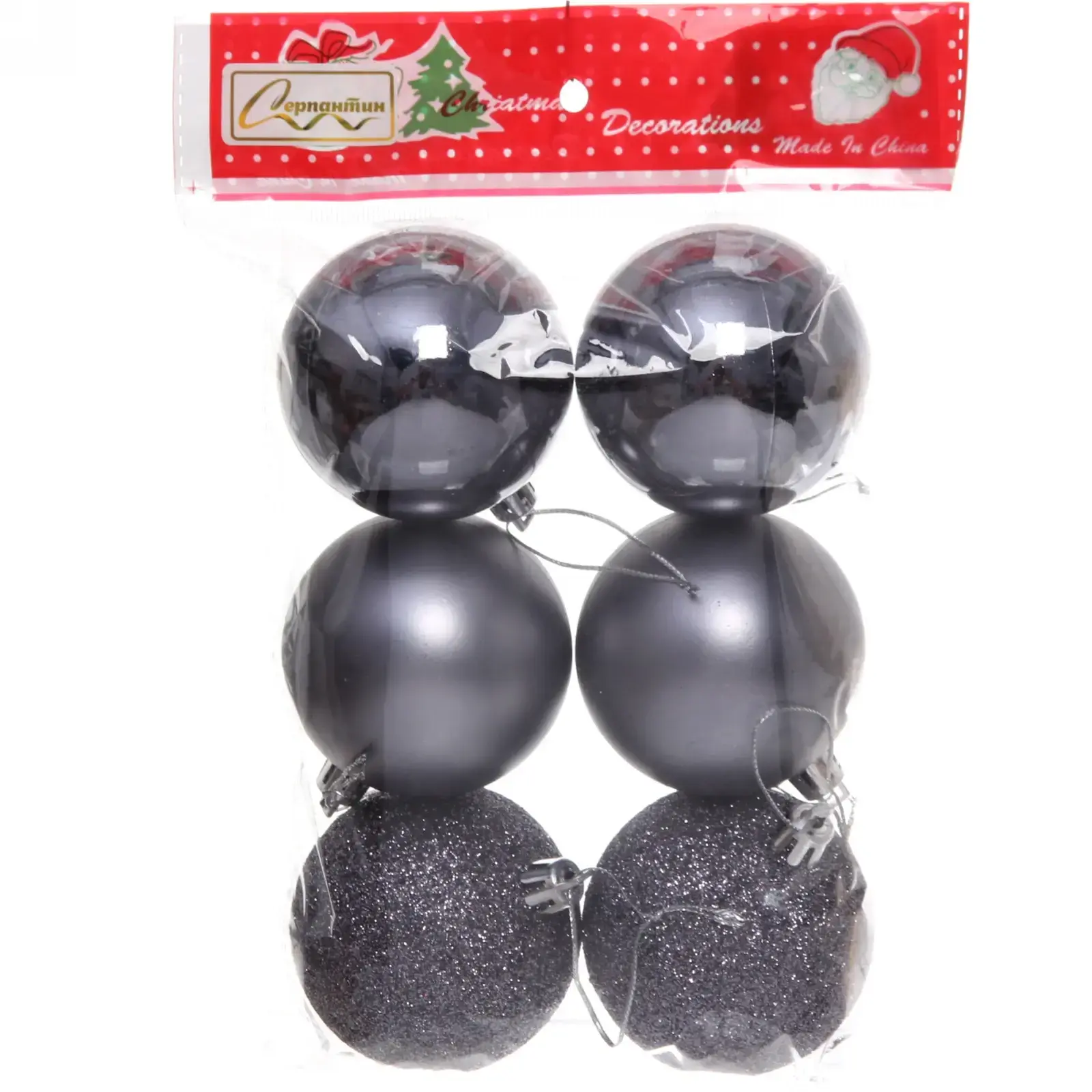Новогодние шары 6 см (набор 6 шт) «Микс фактур», Графит (пакет), пластик, для елки и декорирования