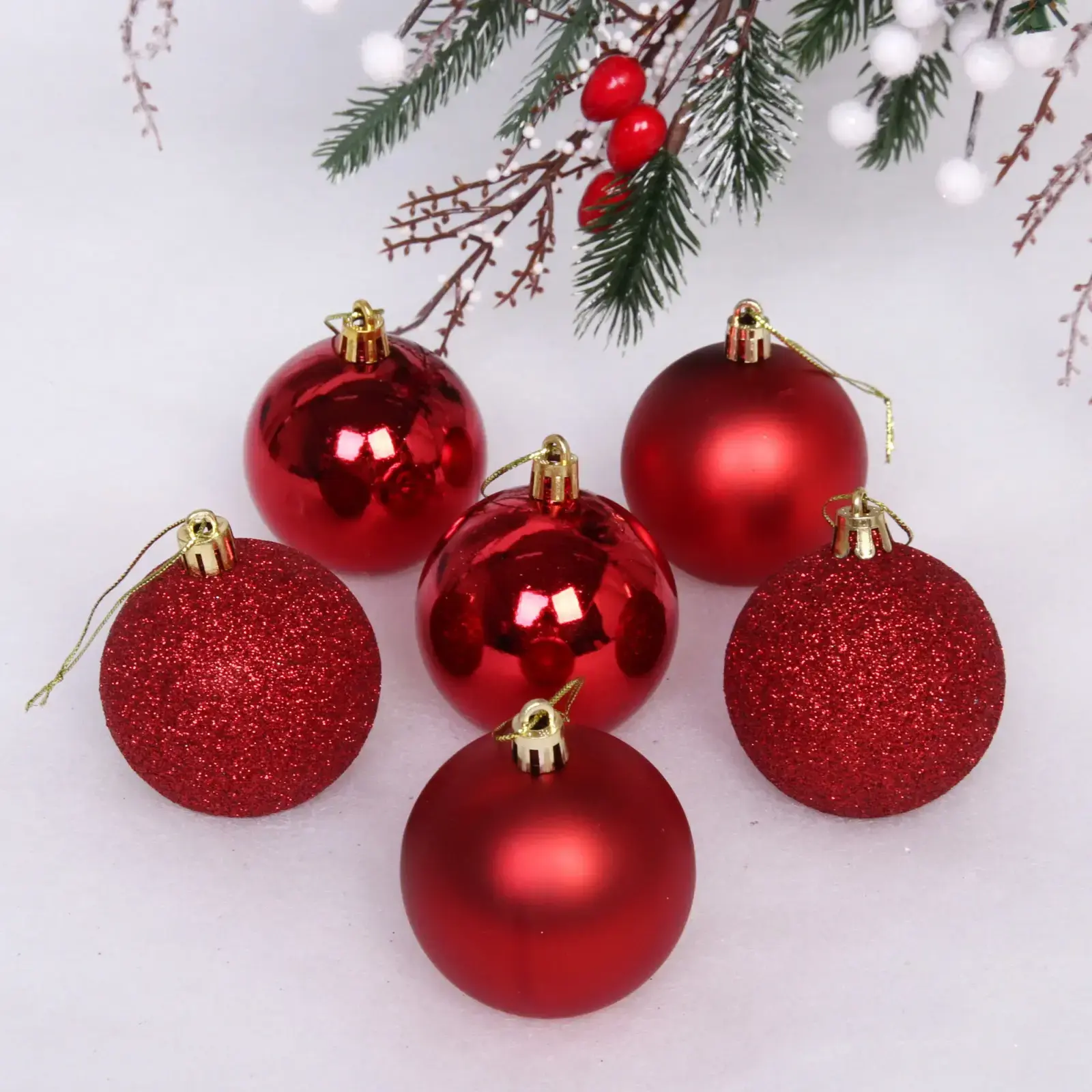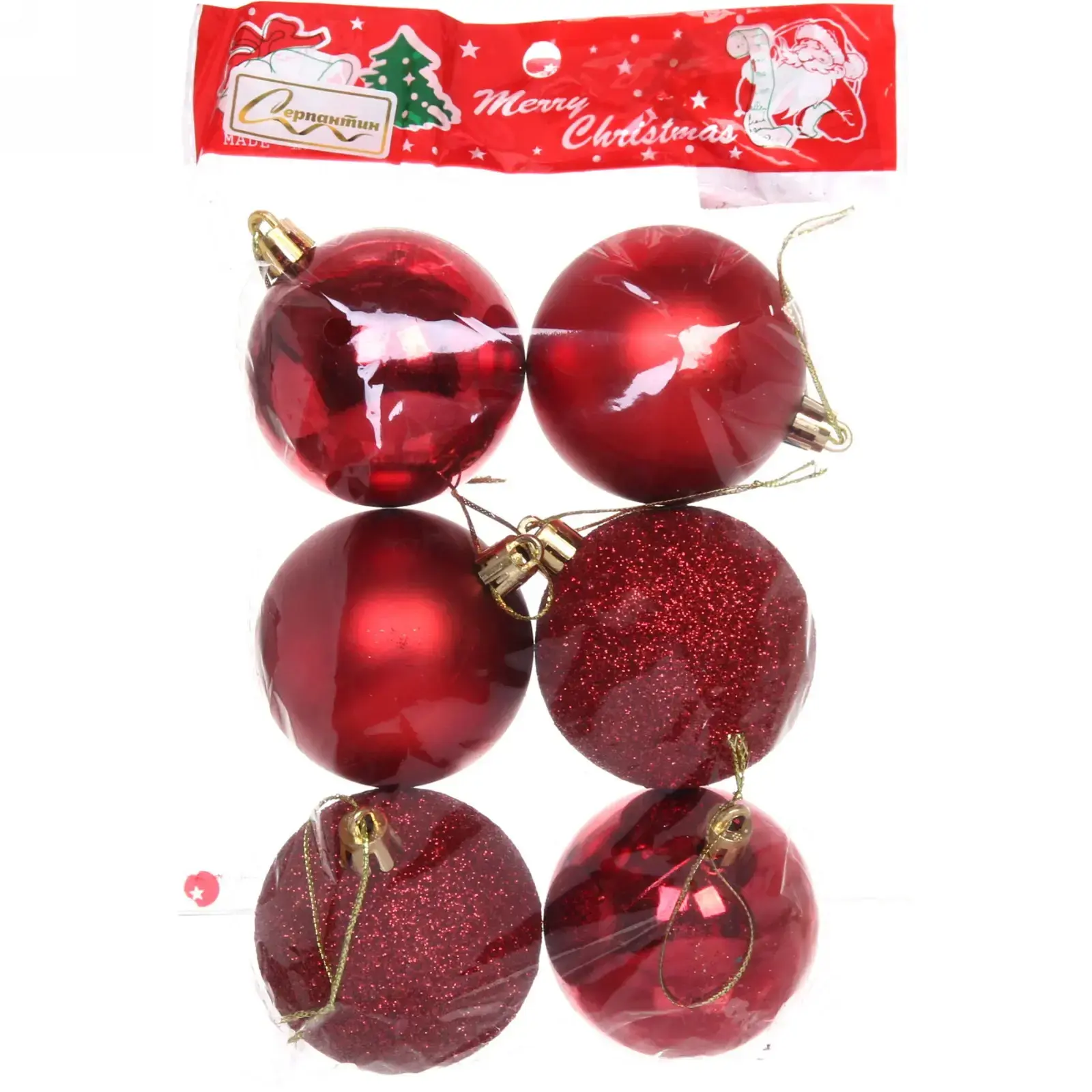 Новогодние шары 6 см (набор 6 шт) «Микс фактур», Красный (пакет), пластик, для елки и декорирования