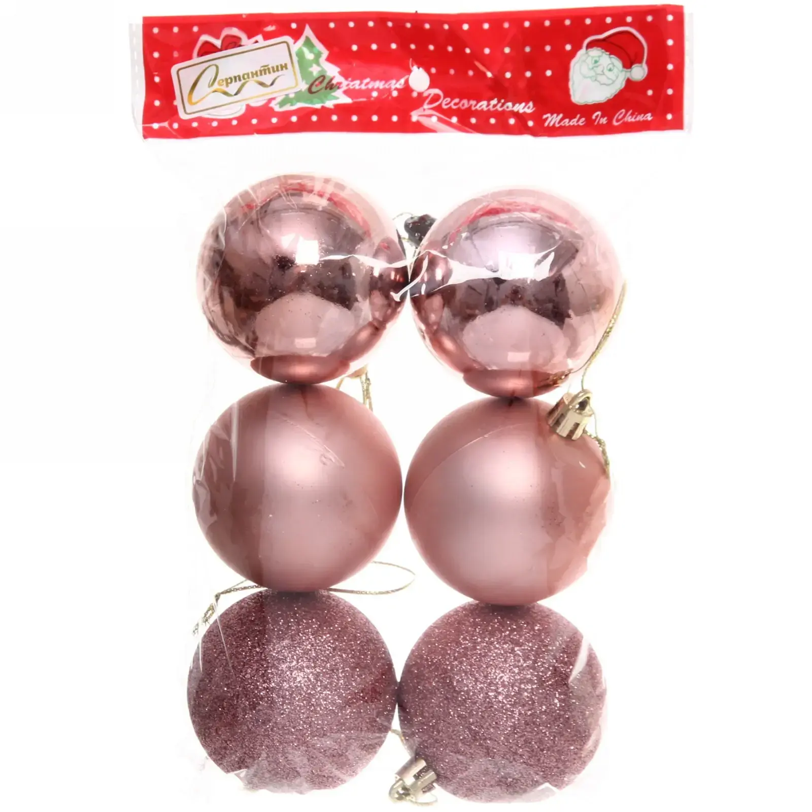 Новогодние шары 6 см (набор 6 шт) «Микс фактур», Розовое золото (пакет), пластик, для елки и декорирования