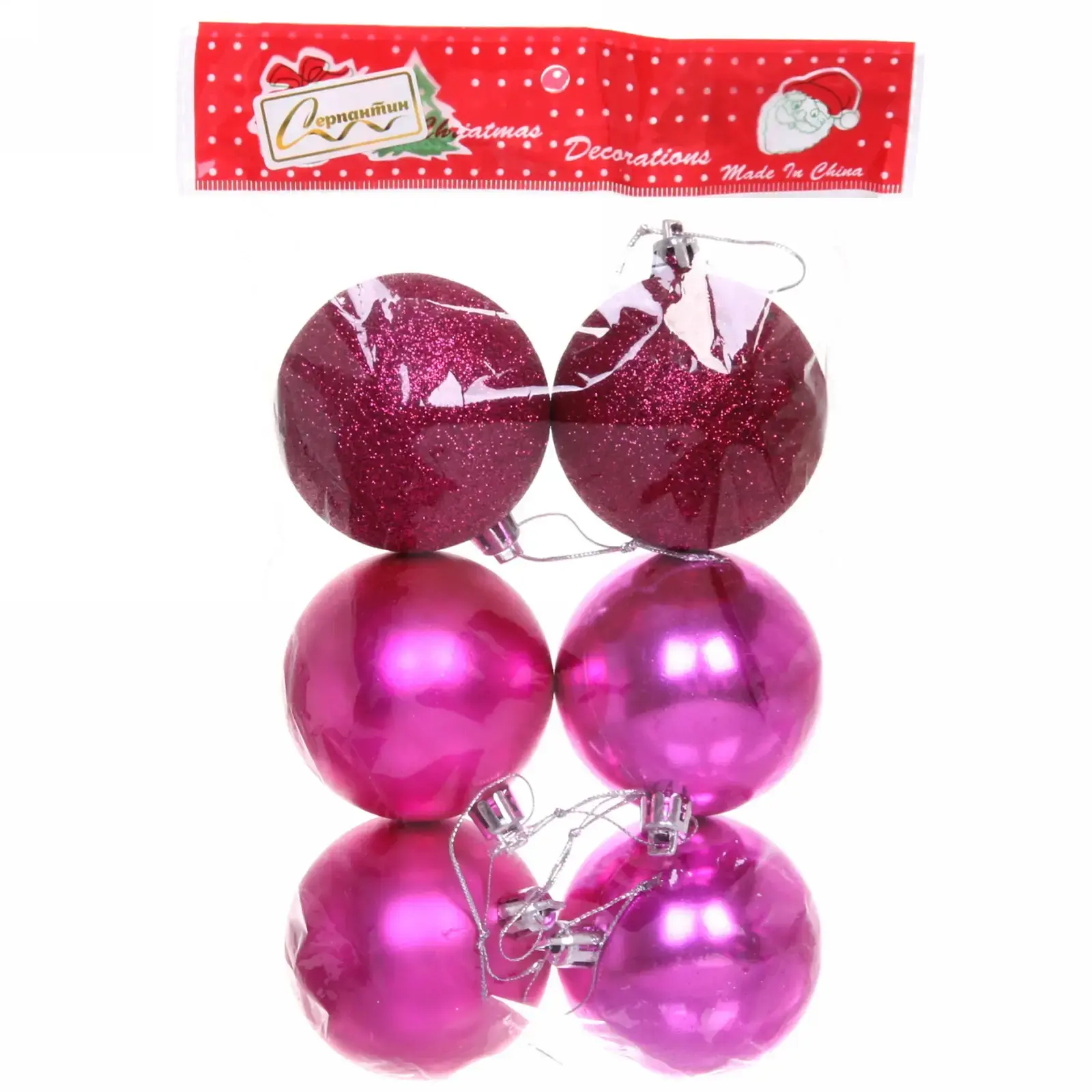 Каждый шар диаметром 6 см изготовлен из ударопрочного пластика. В комплекте 6 полностью готовых к использованию украшений с петлями для подвешивания. Упаковка-пакет с прозрачным окошком позволяет рассмотреть содержимое перед покупкой.