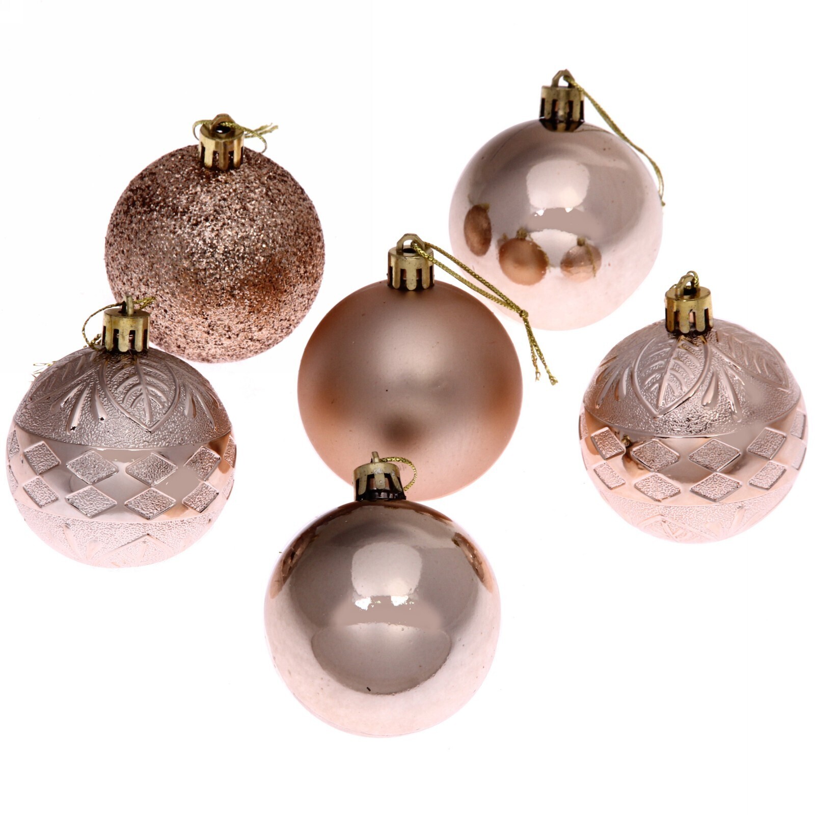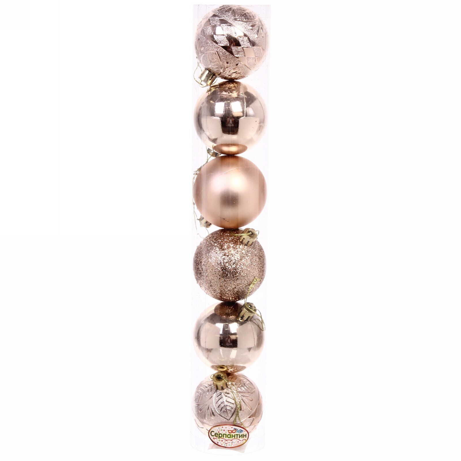 Новогодние шары 6 см (набор 6 шт) «Микс фактур», шампань, пластик, для елки и декорирования
